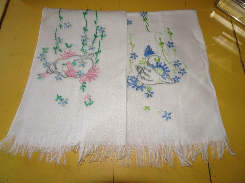 2 Embroidered Dinner Napkins, Seashells, Nautical