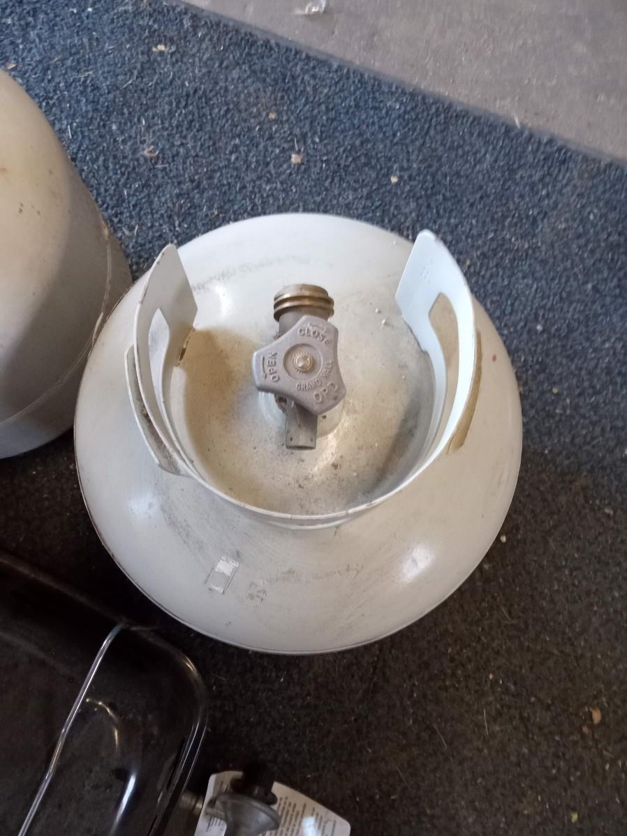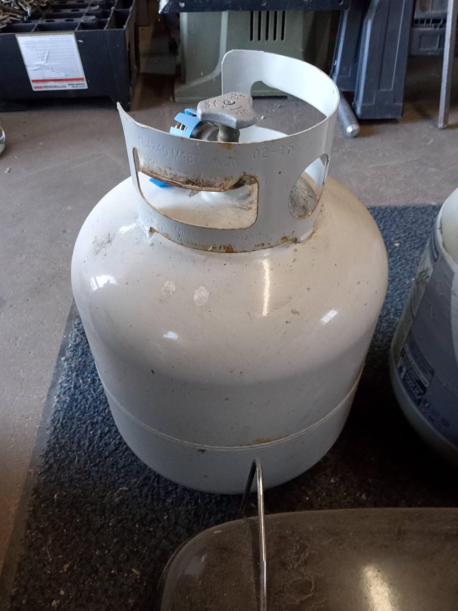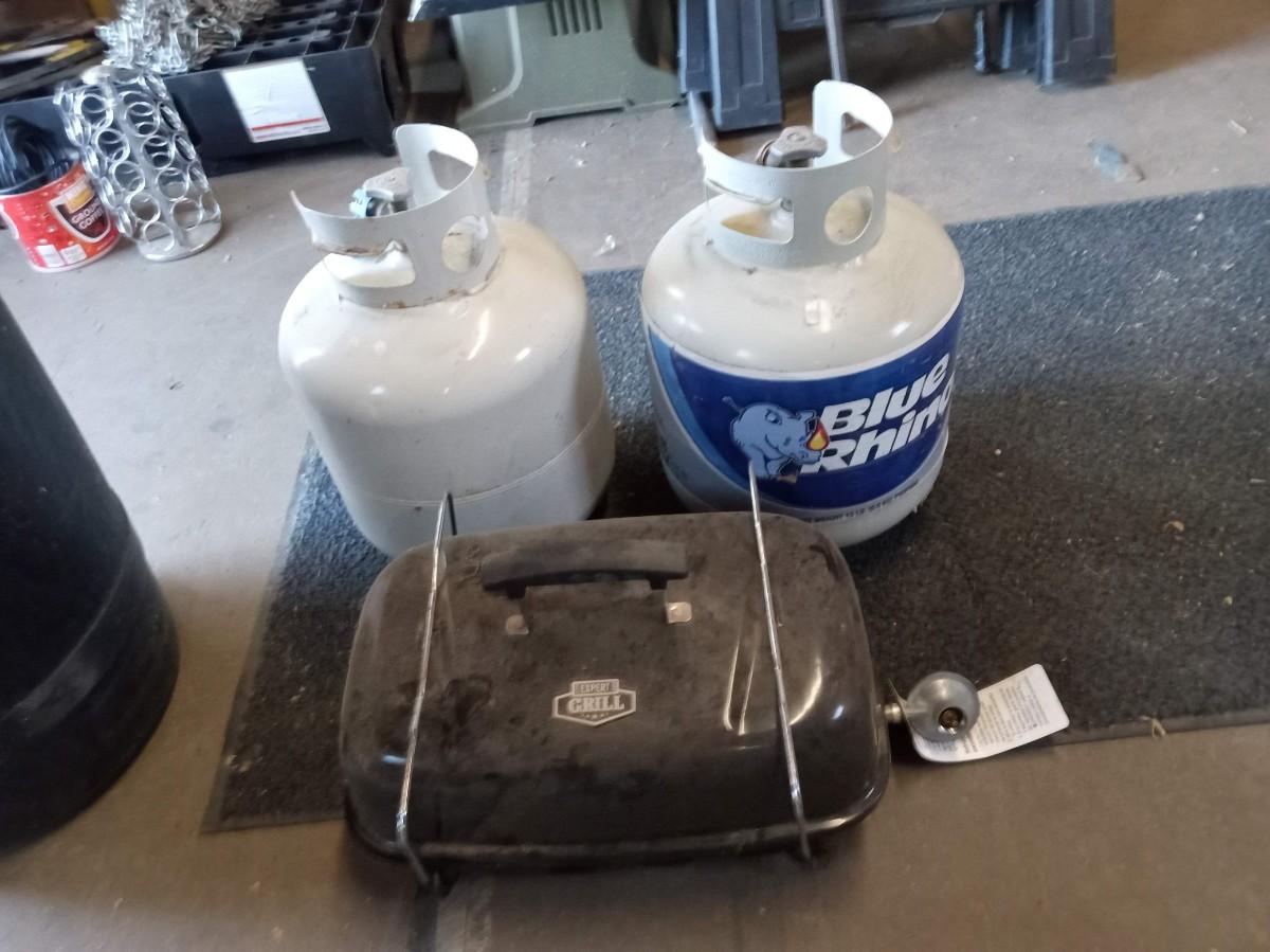 2 EMPTY PROPANE TANKS AND A  PORTABLE PROPANE HIBACHI