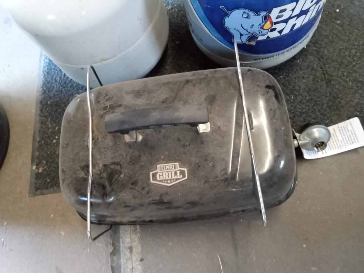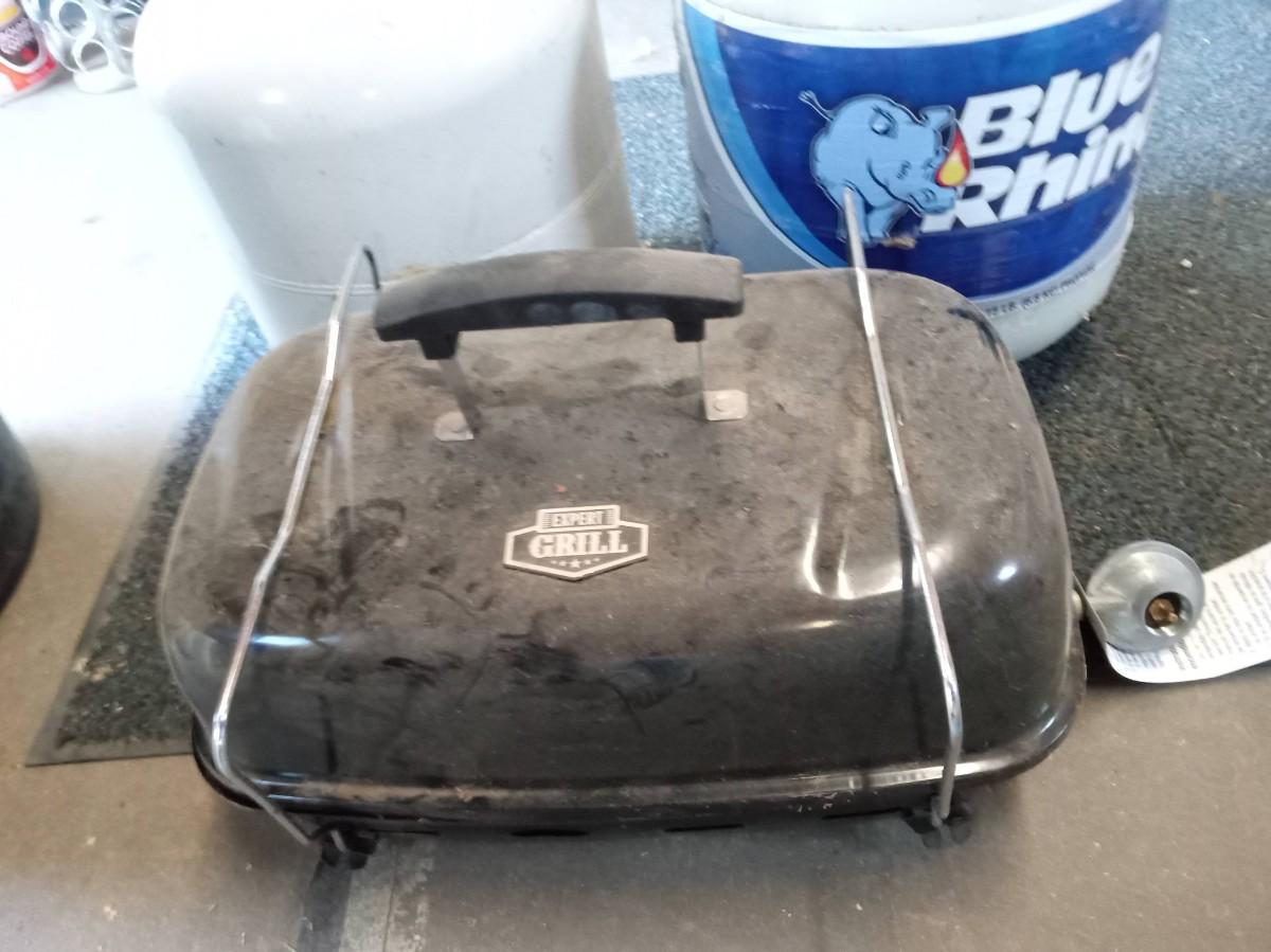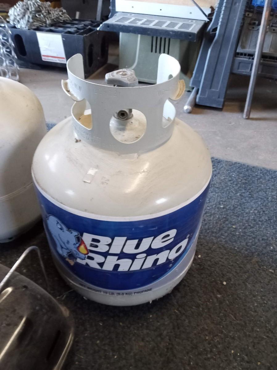 2 EMPTY PROPANE TANKS AND A  PORTABLE PROPANE HIBACHI
