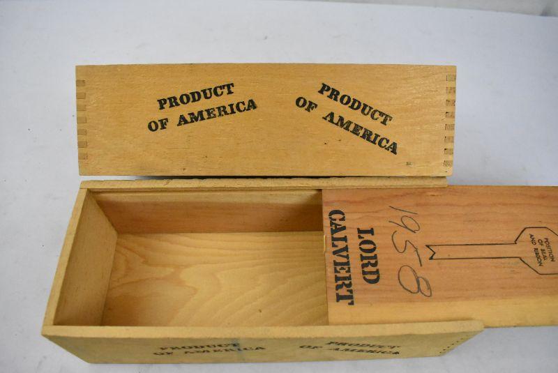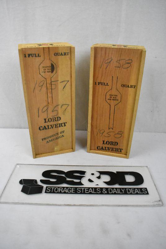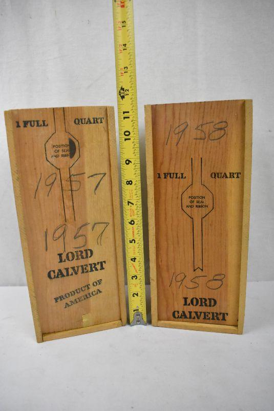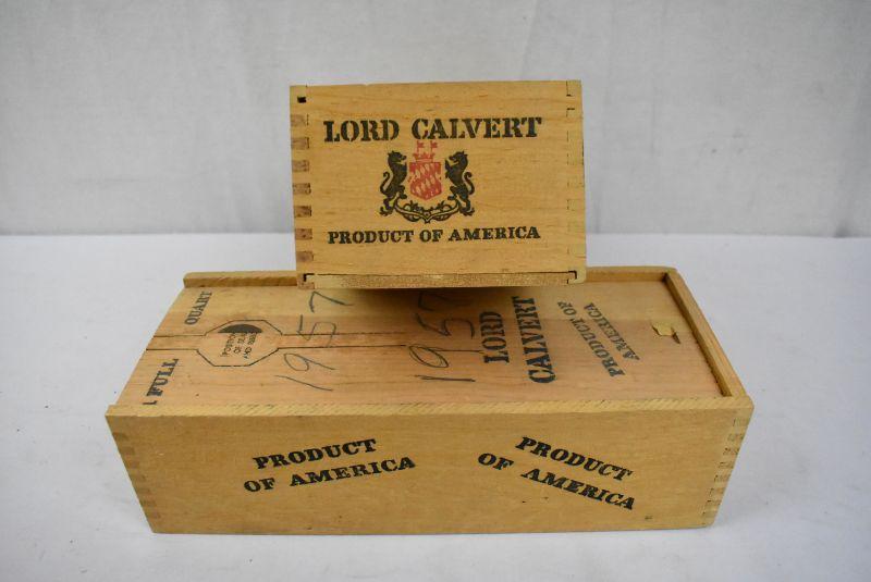 2 EMPTY Wooden Boxes "Lord Calvert" 1 Full Quart - Vintage 1950s