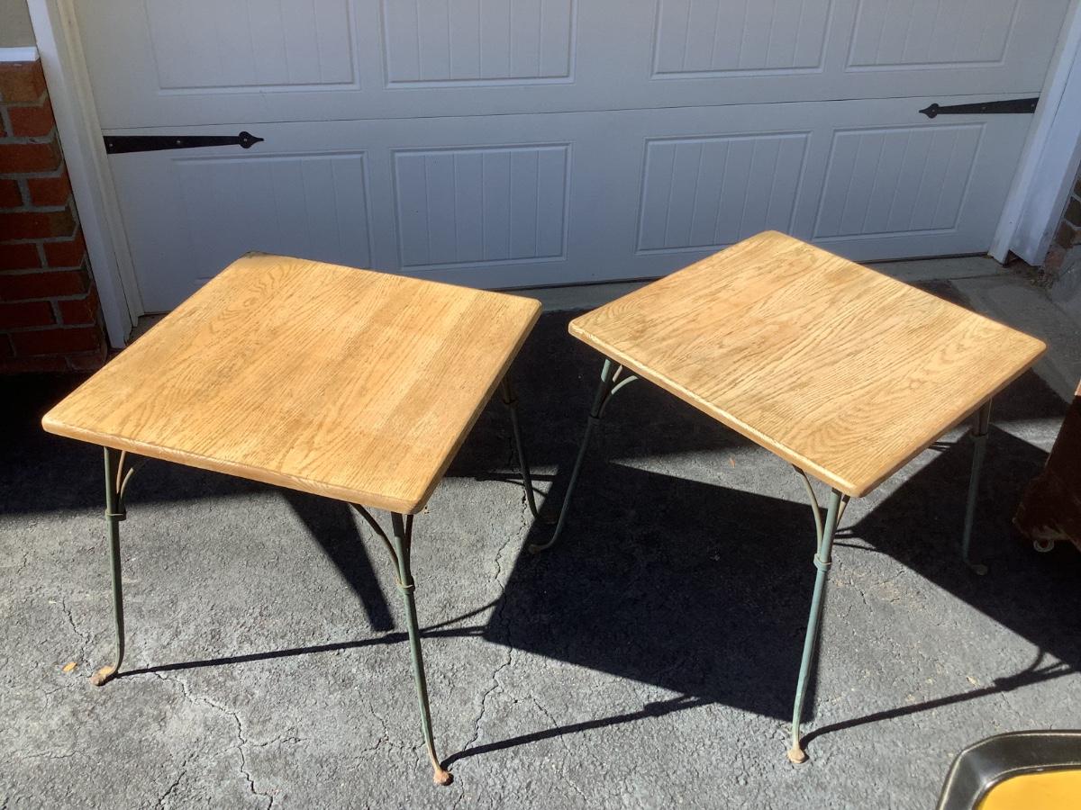 2 end-side tables-Wooden top & metal legs 23"H 24" x 24"