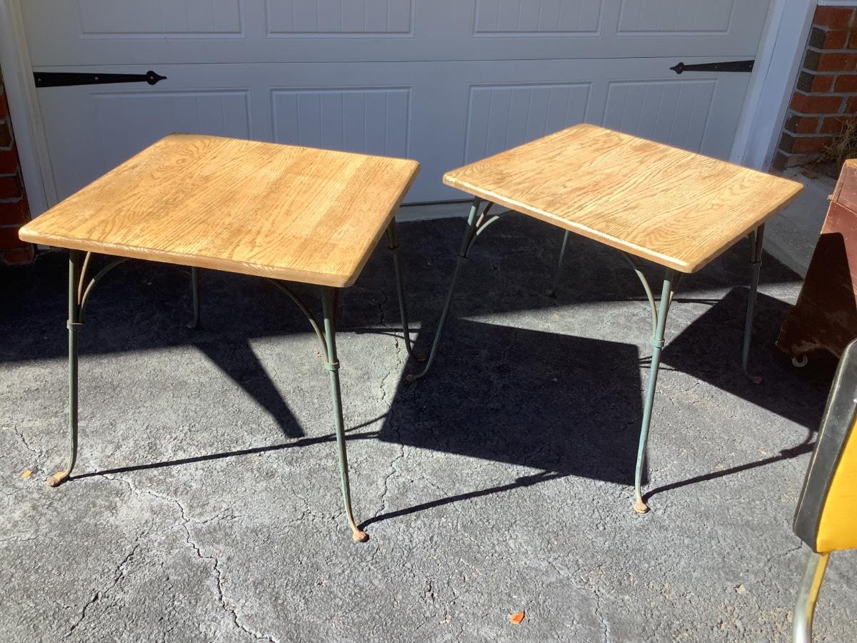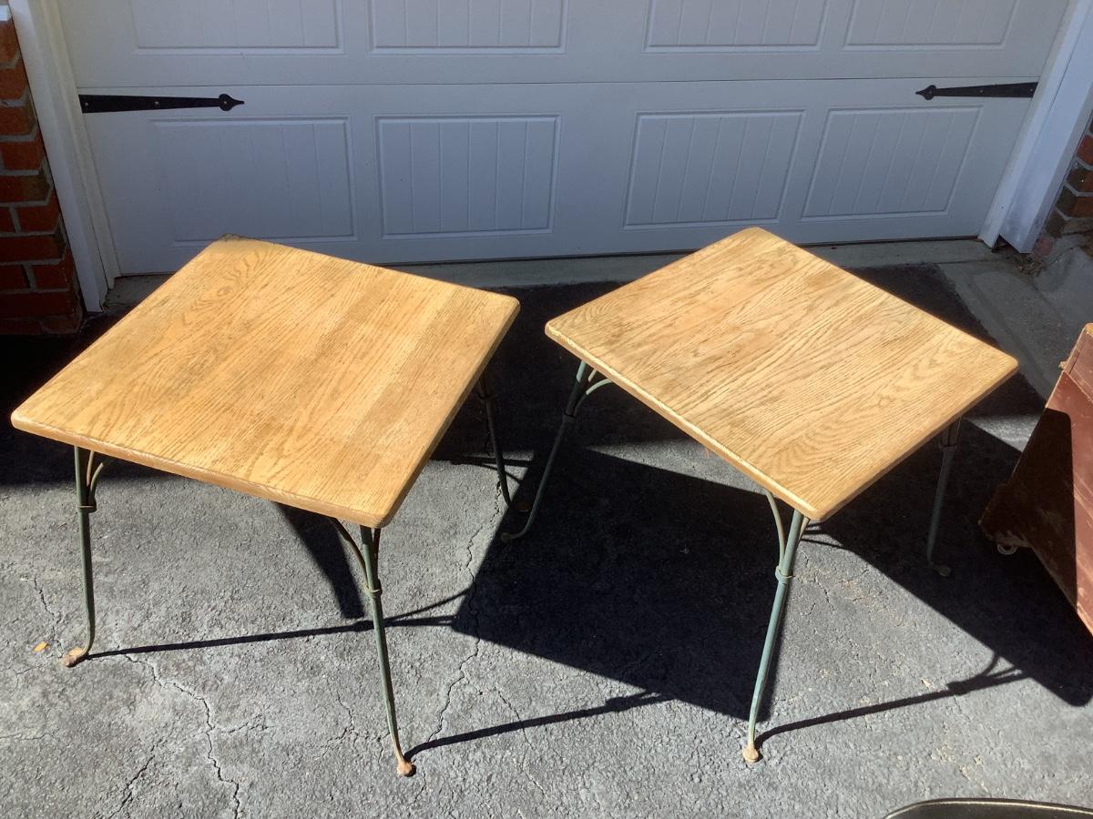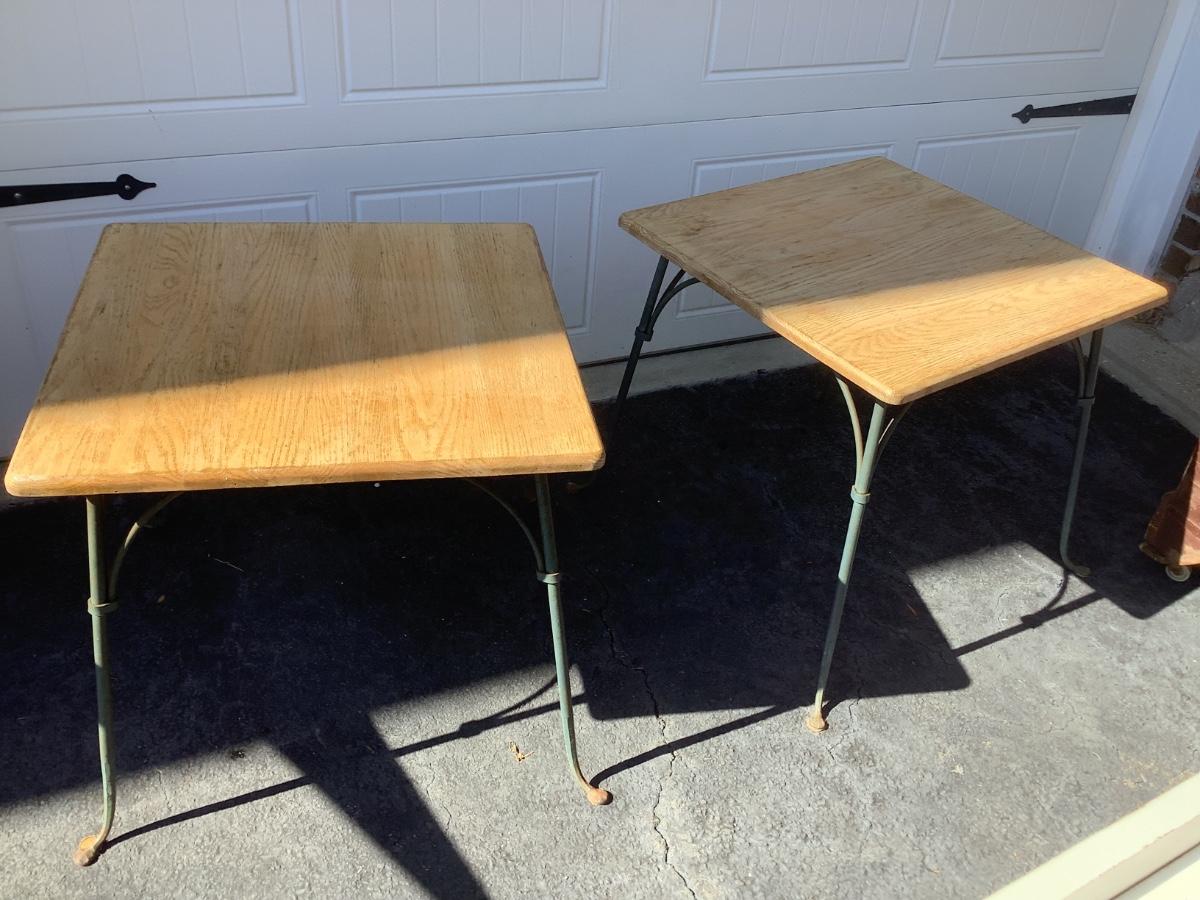 2 end-side tables-Wooden top & metal legs 23"H 24" x 24"