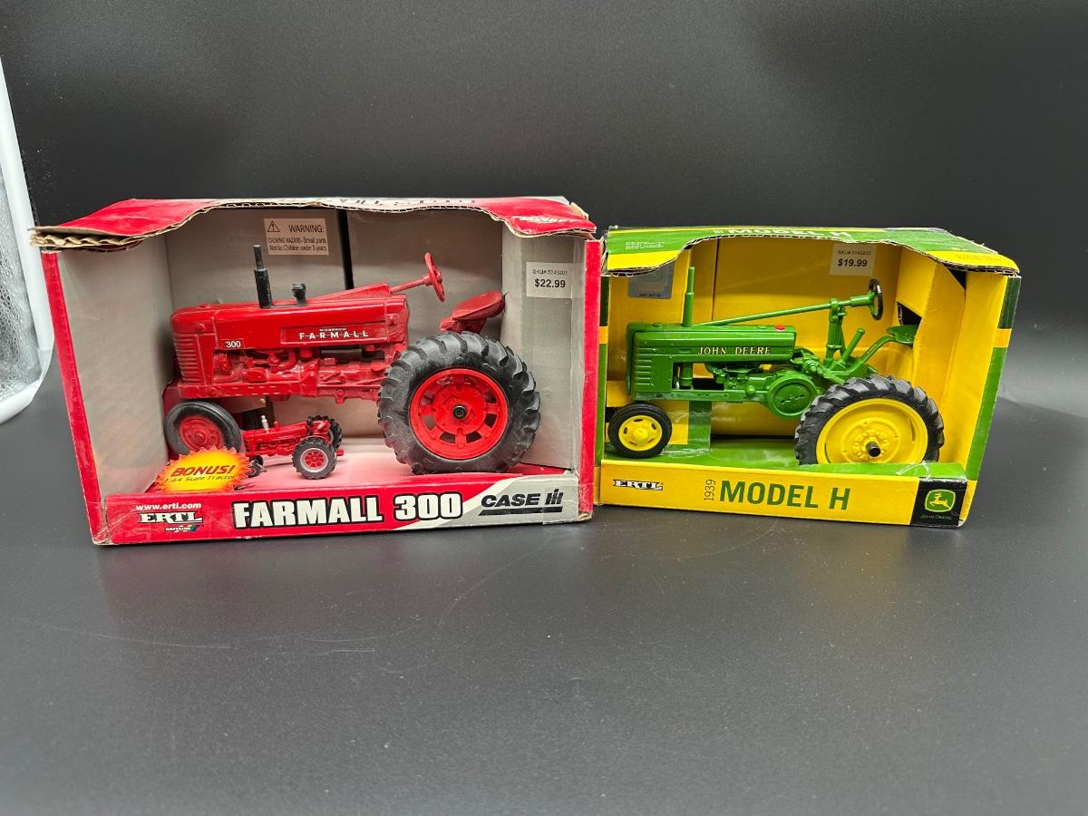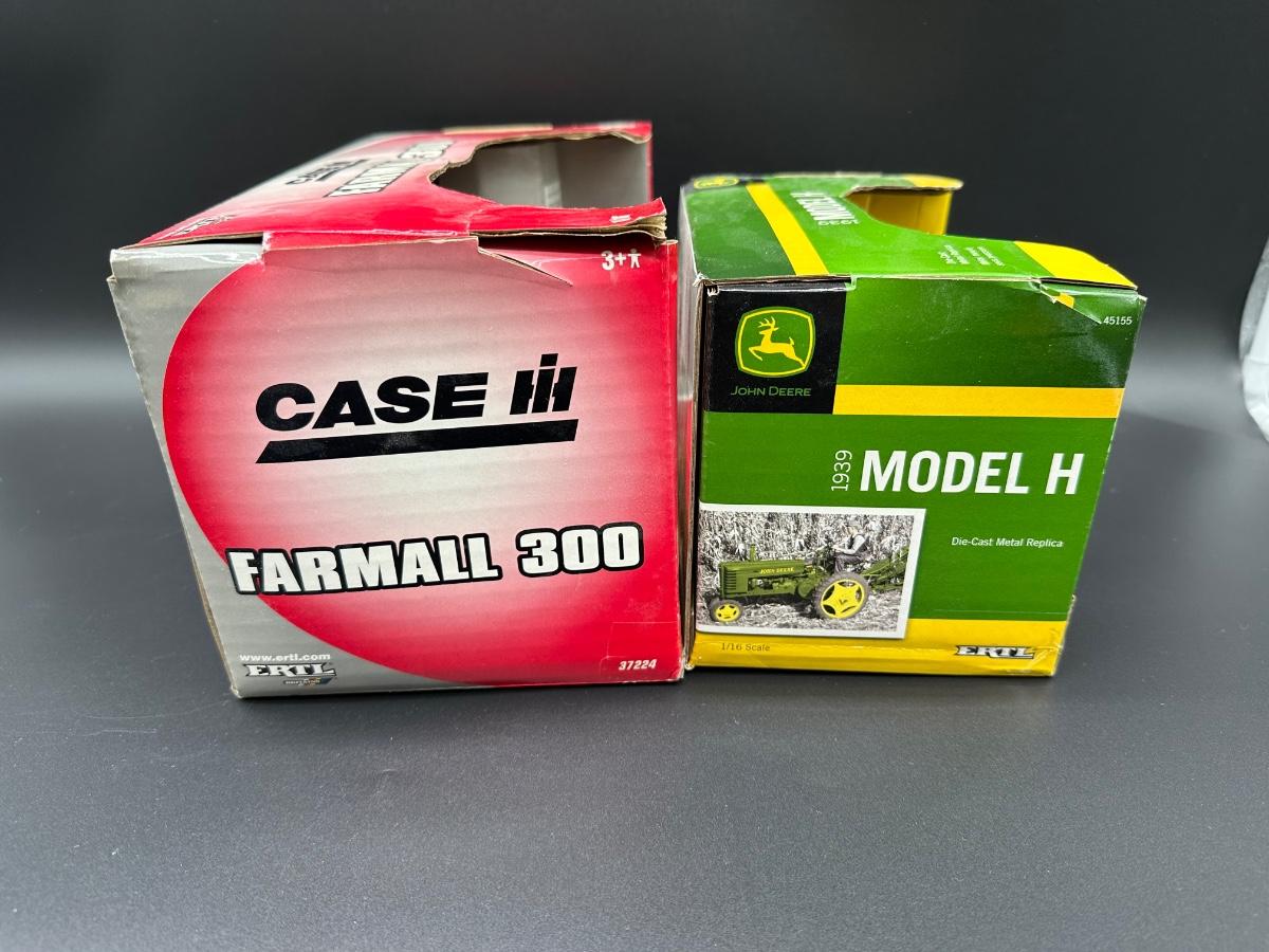 (2) ERTL 1/16 Scale Die-Cast Farm Tractors – Farmall 300 Case IH & 1939 John Deere Model H – Boxed