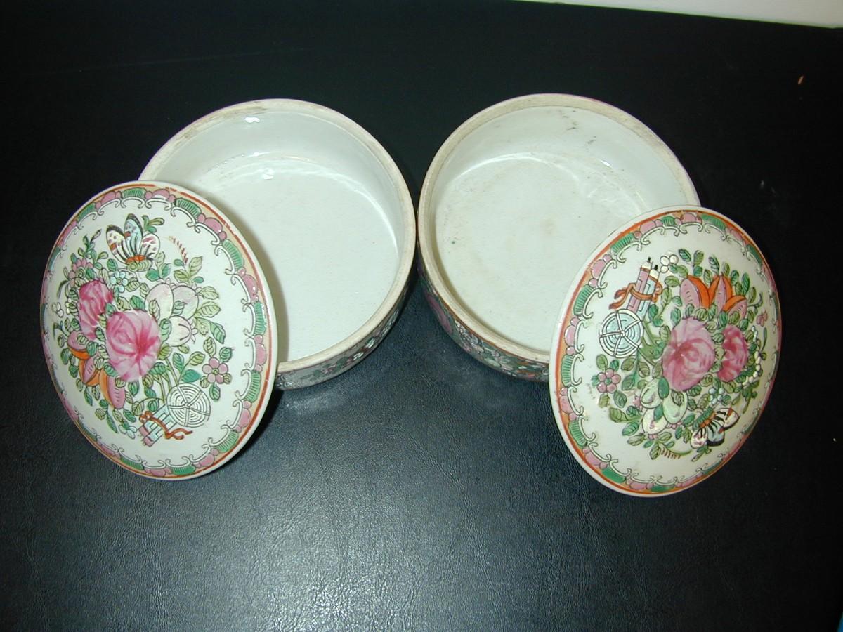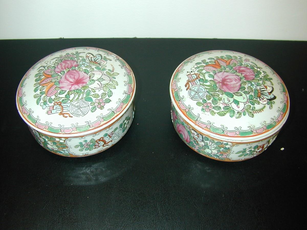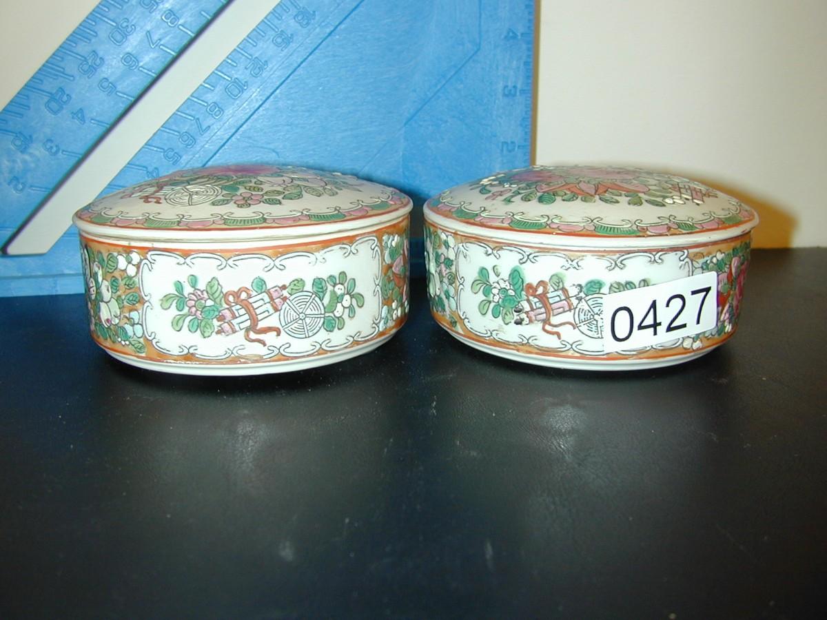 2 Famille Rose Round Dresser Trinket Boxes Lot 427