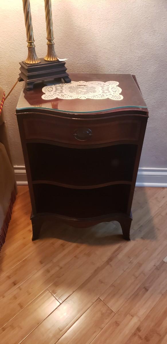 2 Fancher Furniture Co., Mahogany Table, One Drawer Nightstand