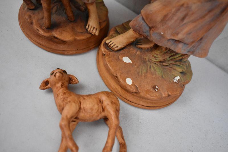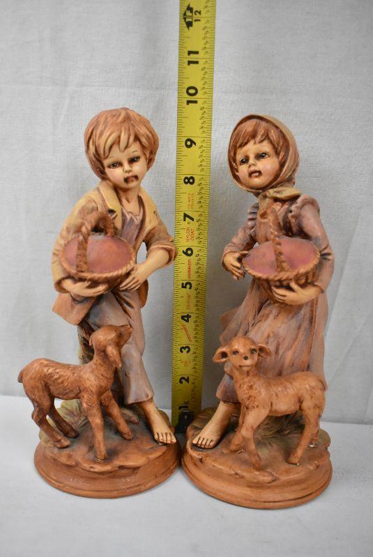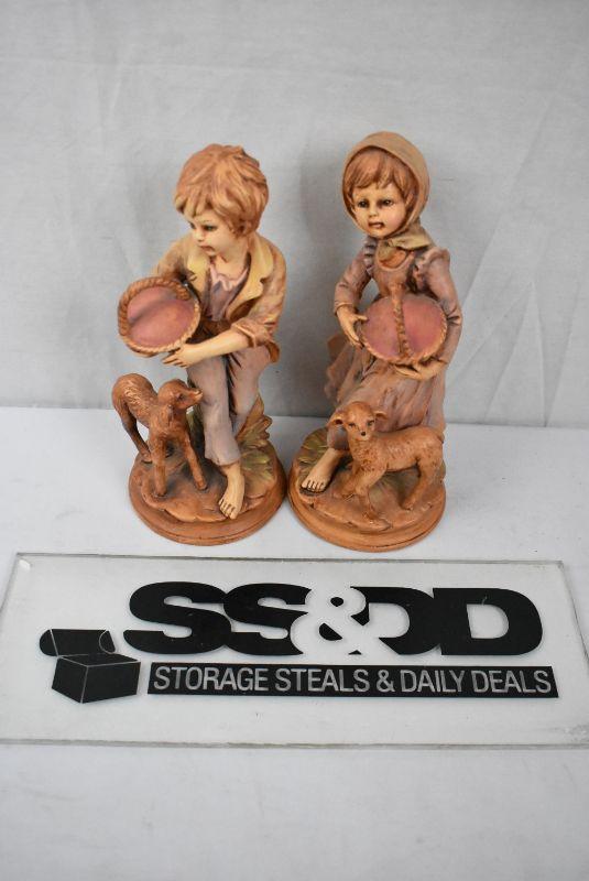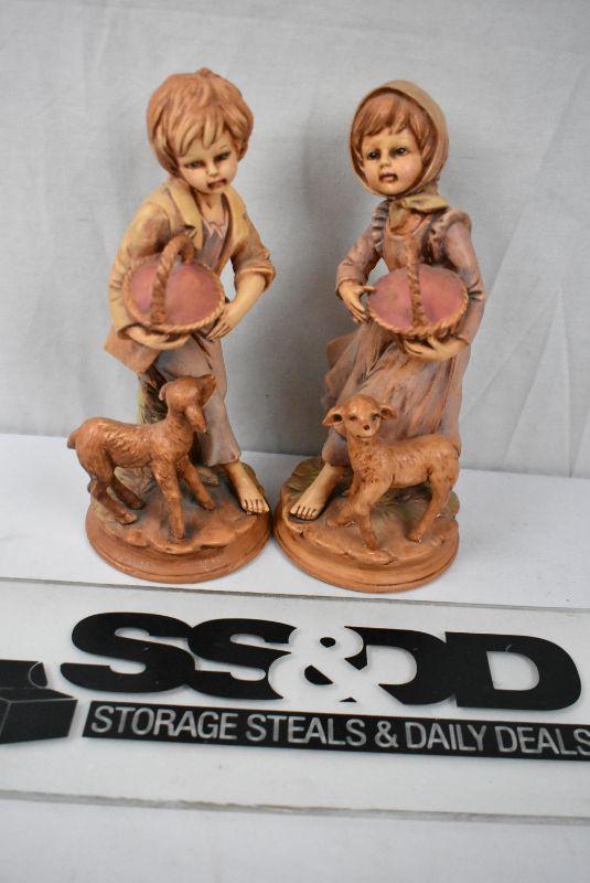 2 Figurines. Boy with Lamb & Girl with Lamb (needs repair as shown) 1992 Narco