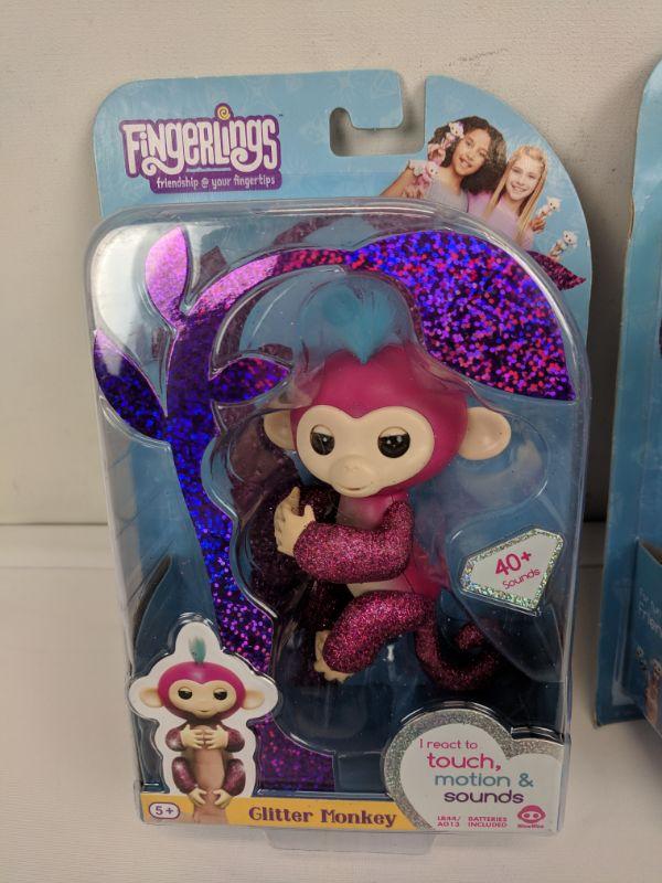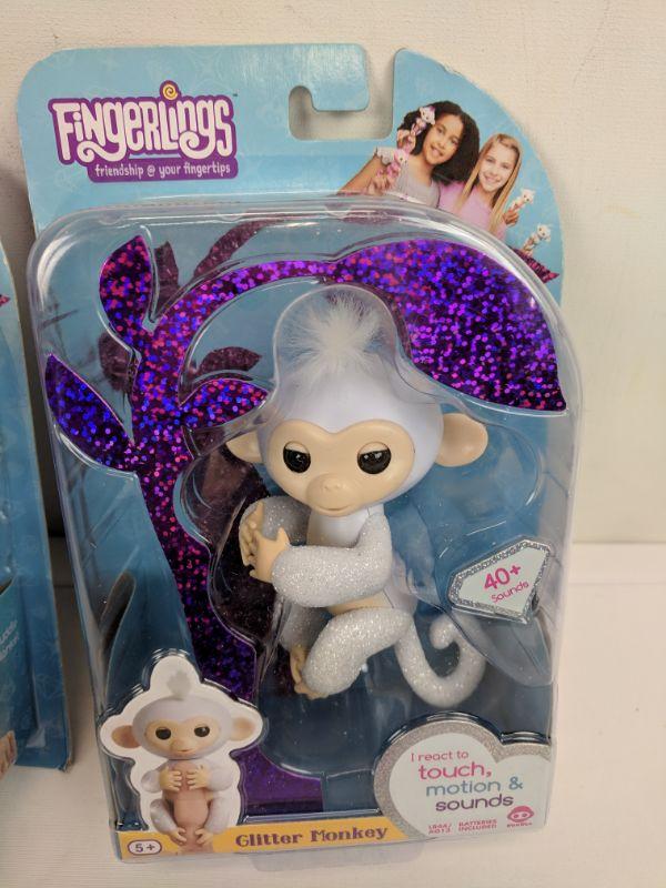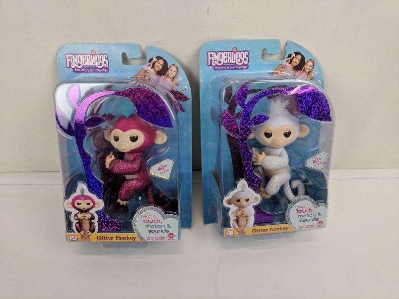 2 Fingerlings, Pink & White Glitter Monkey - New