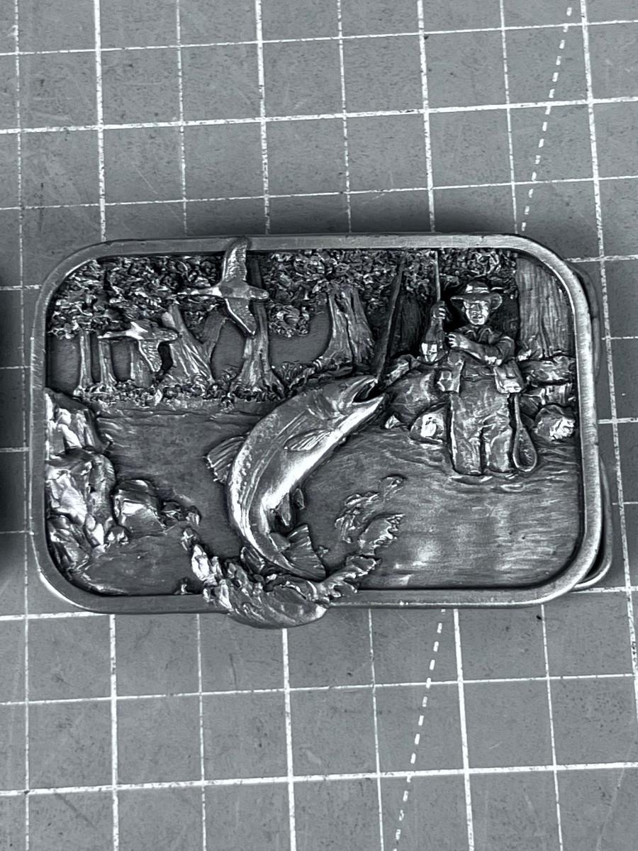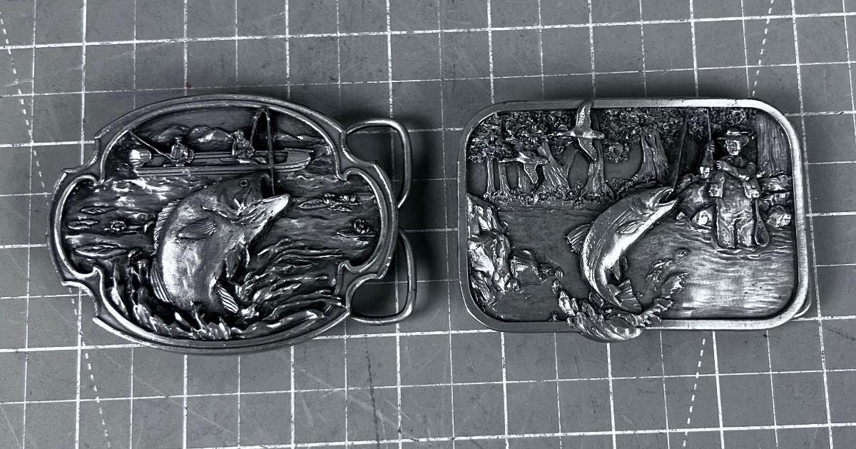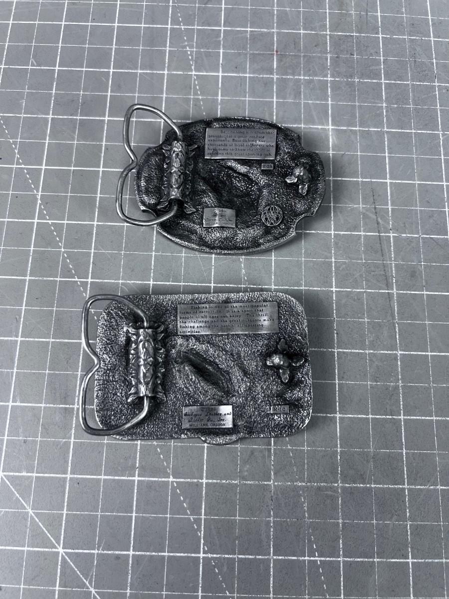 2 Fishing Belt Buckles from Siskiyou Dated 1982