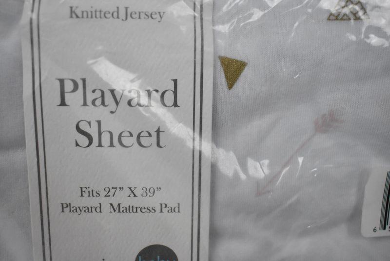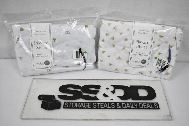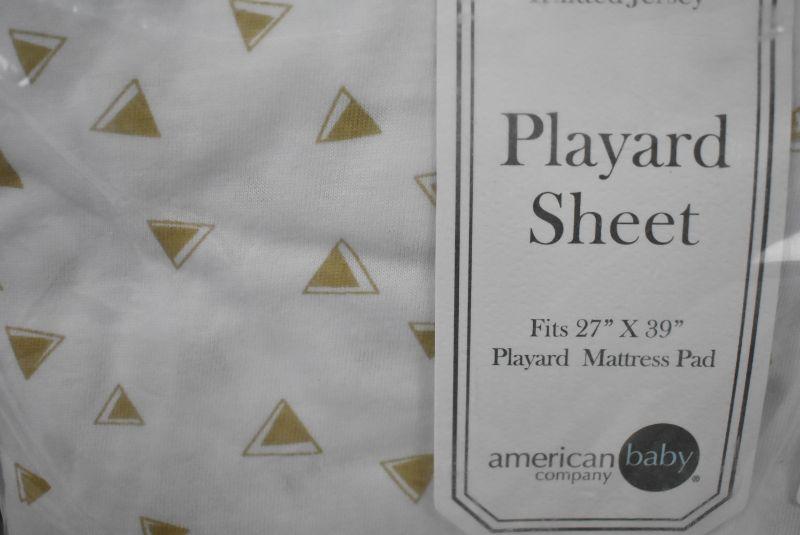 2 Fitted Play Yard Sheets American Baby Co. Cotton Jersey Knit Fitted Playard Sheet, Pink/Gold Arrows &, Taupe Triangles - New