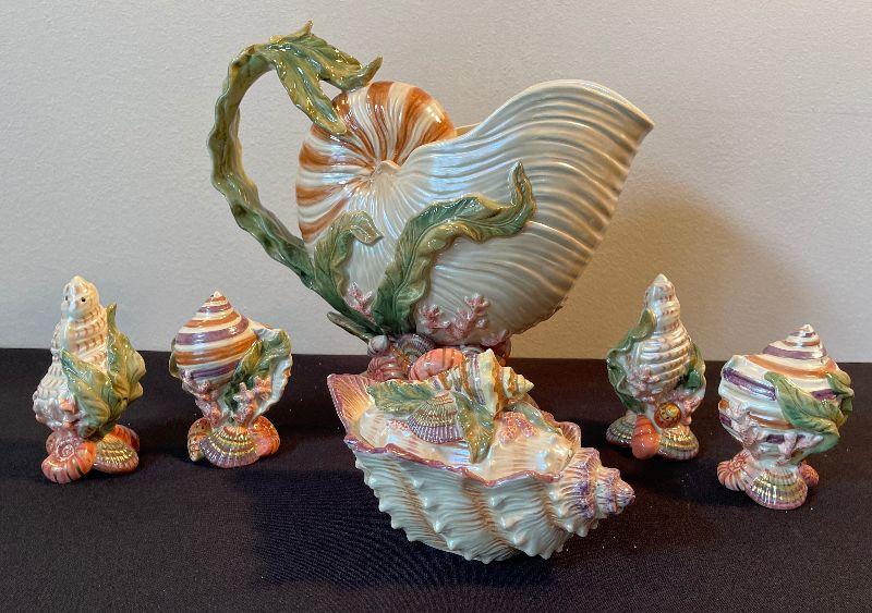 #2 Fitz and Floyd Sea Shell: S & P, Pitcher, Sugar Bowl