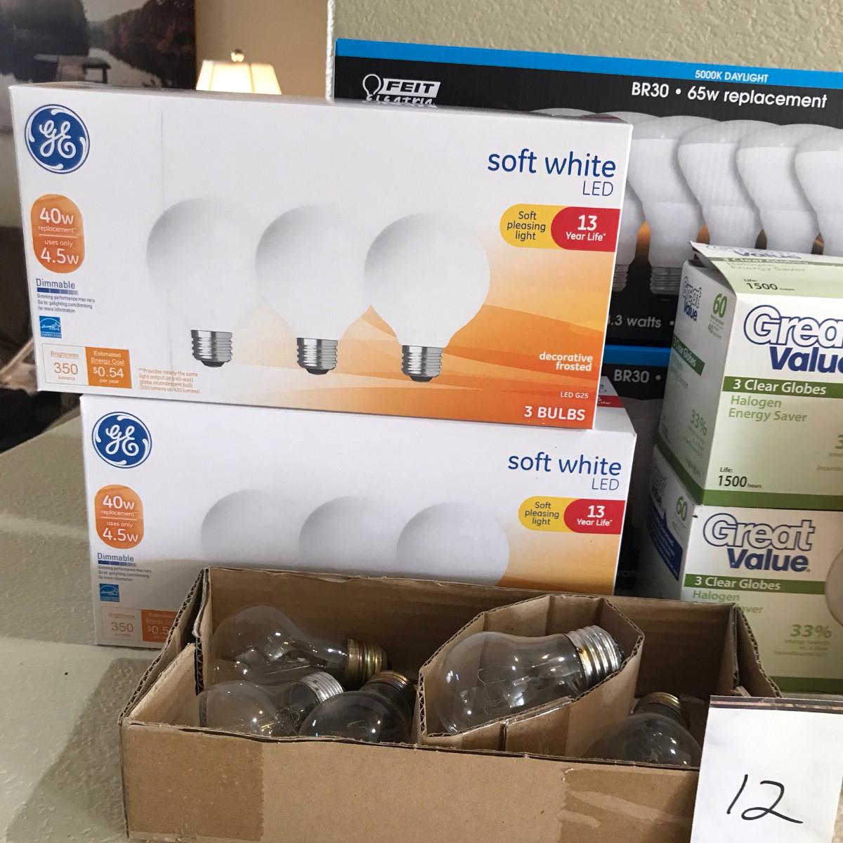 2 Grape box flats of light bulbs. Some boxes are full some have as few as 1 light.