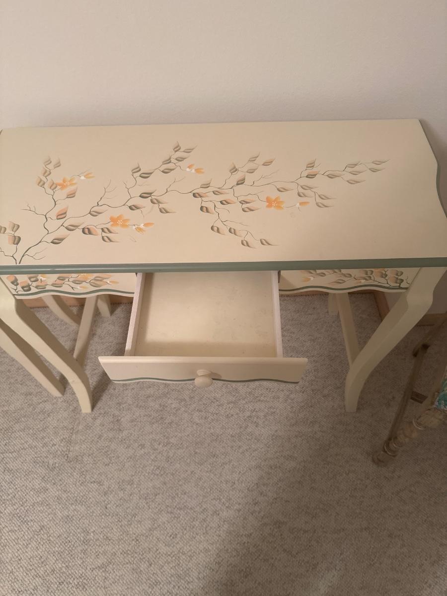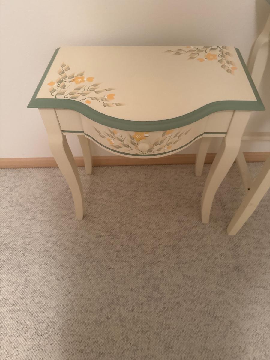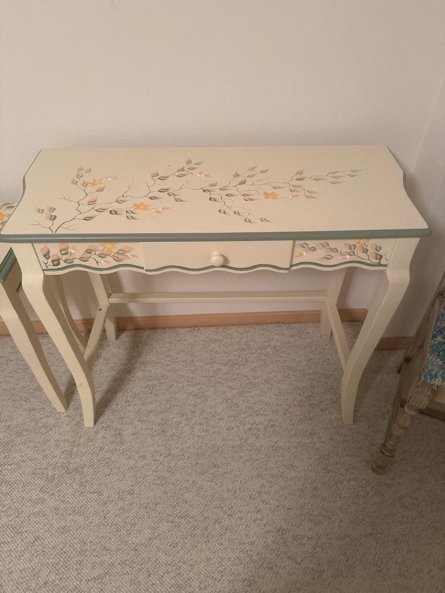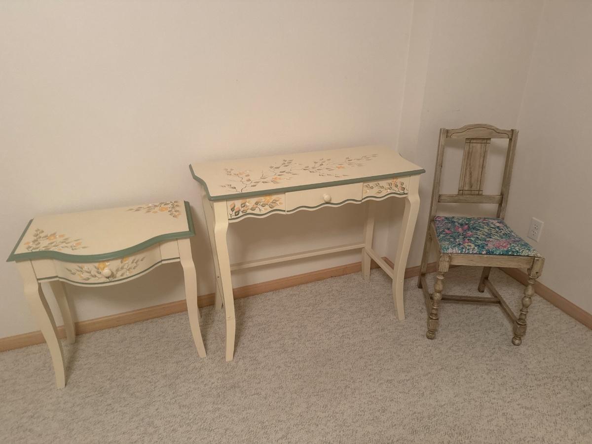 The smaller table is 24 inches tall by 24 inches wide by 18 inches deep. The larger table is 36 inches wide by 30 1/2 inches tall by 16 inches deep.