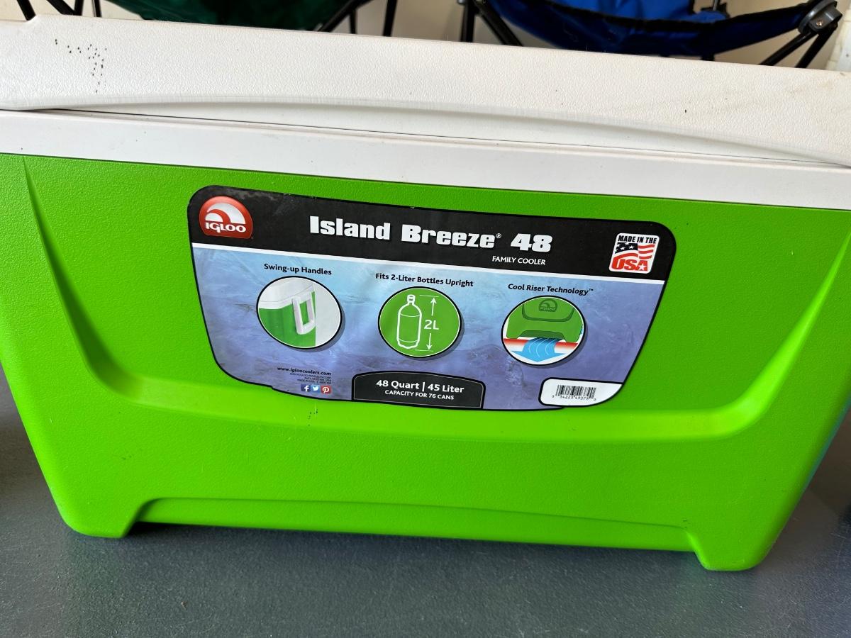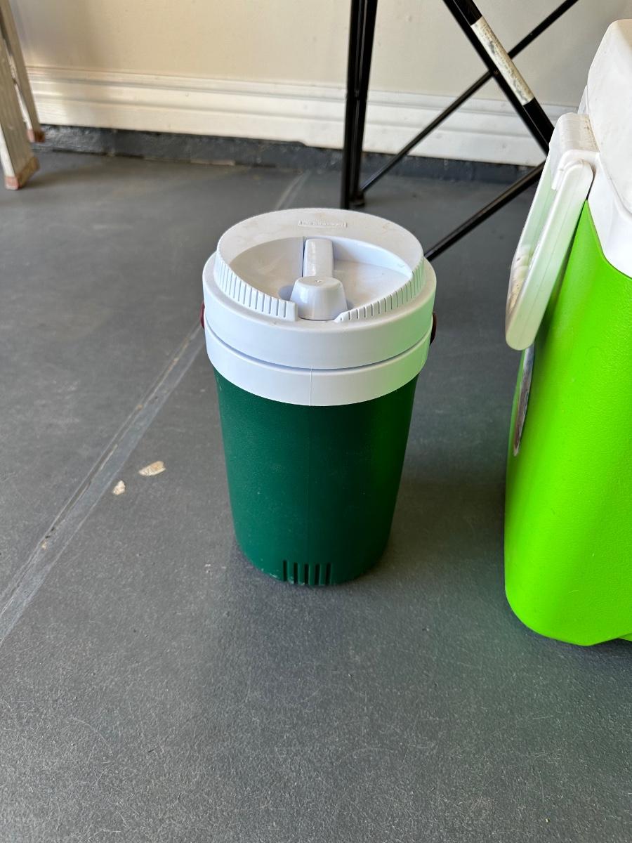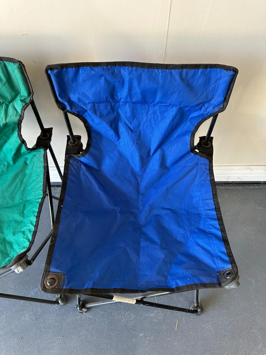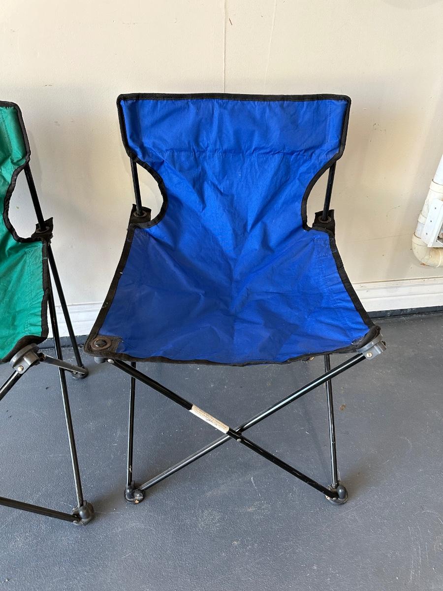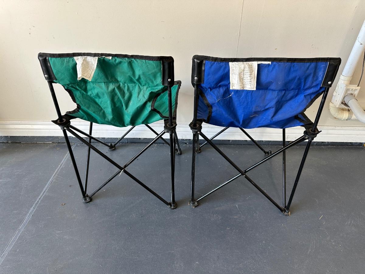 2 FOLDING CHAIRS, 2 BEVERAGE COOLERS AND A FOOD COOLER