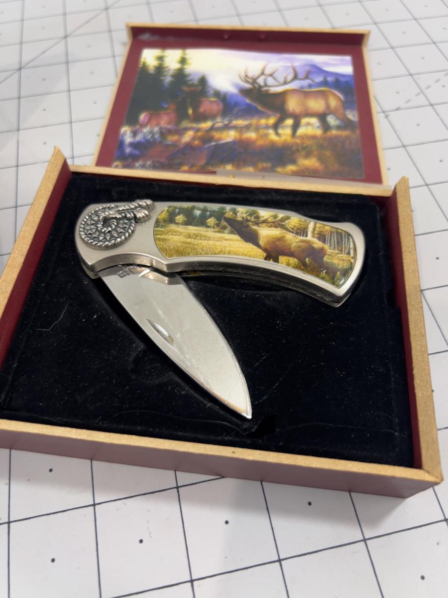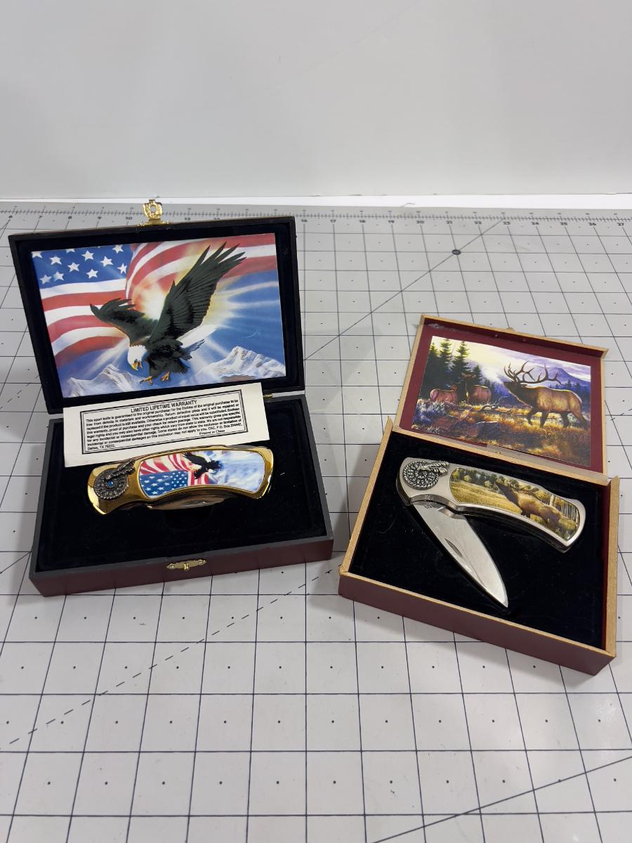 2 Folding Knives in Presentation  Boxes Elk & Eagle
