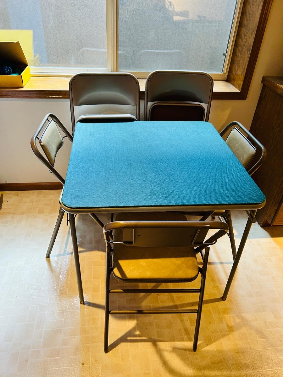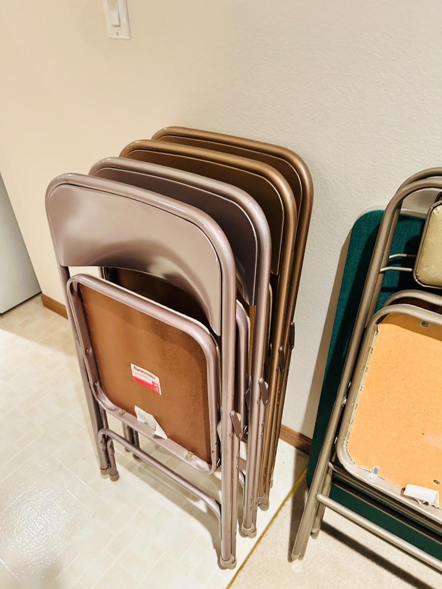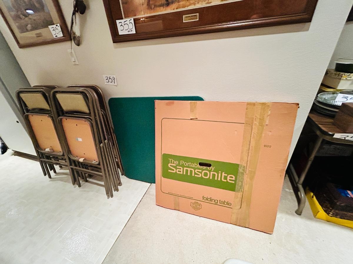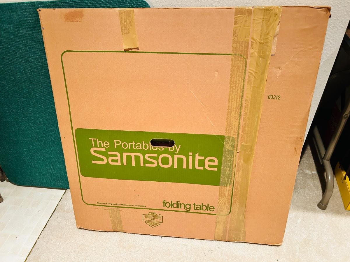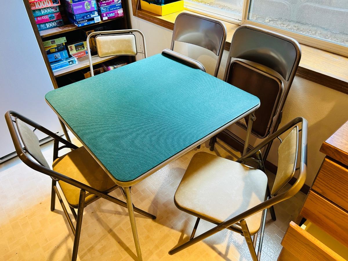 2 FOLDING SAMSONITE CARD TABLES AND 8 CHAIRS