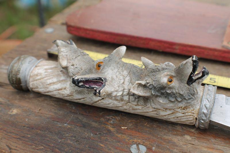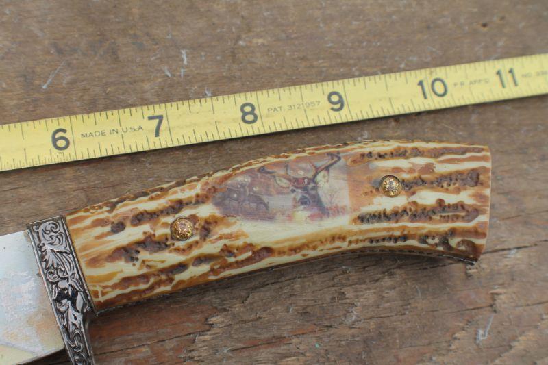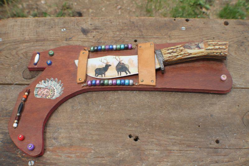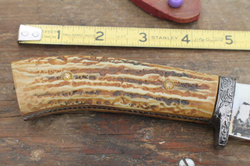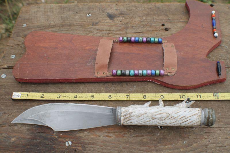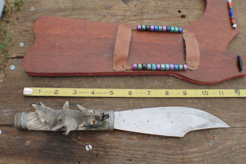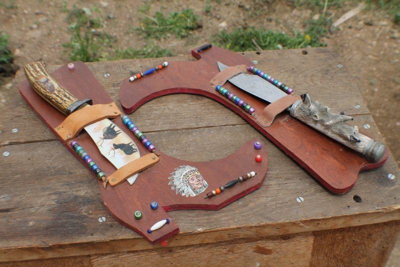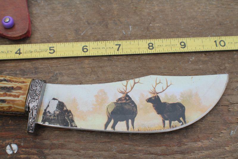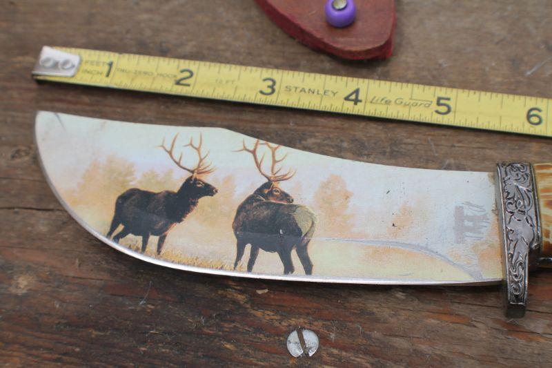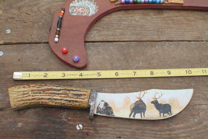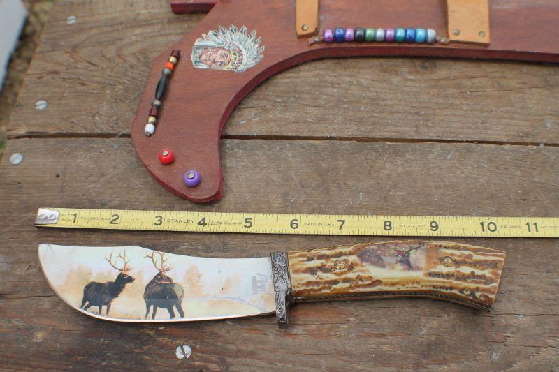 Lot #41: (2) Folk Art Handpainted Knives (Elk and Wolf Theme) w/ Custom Boot Sheath Frames