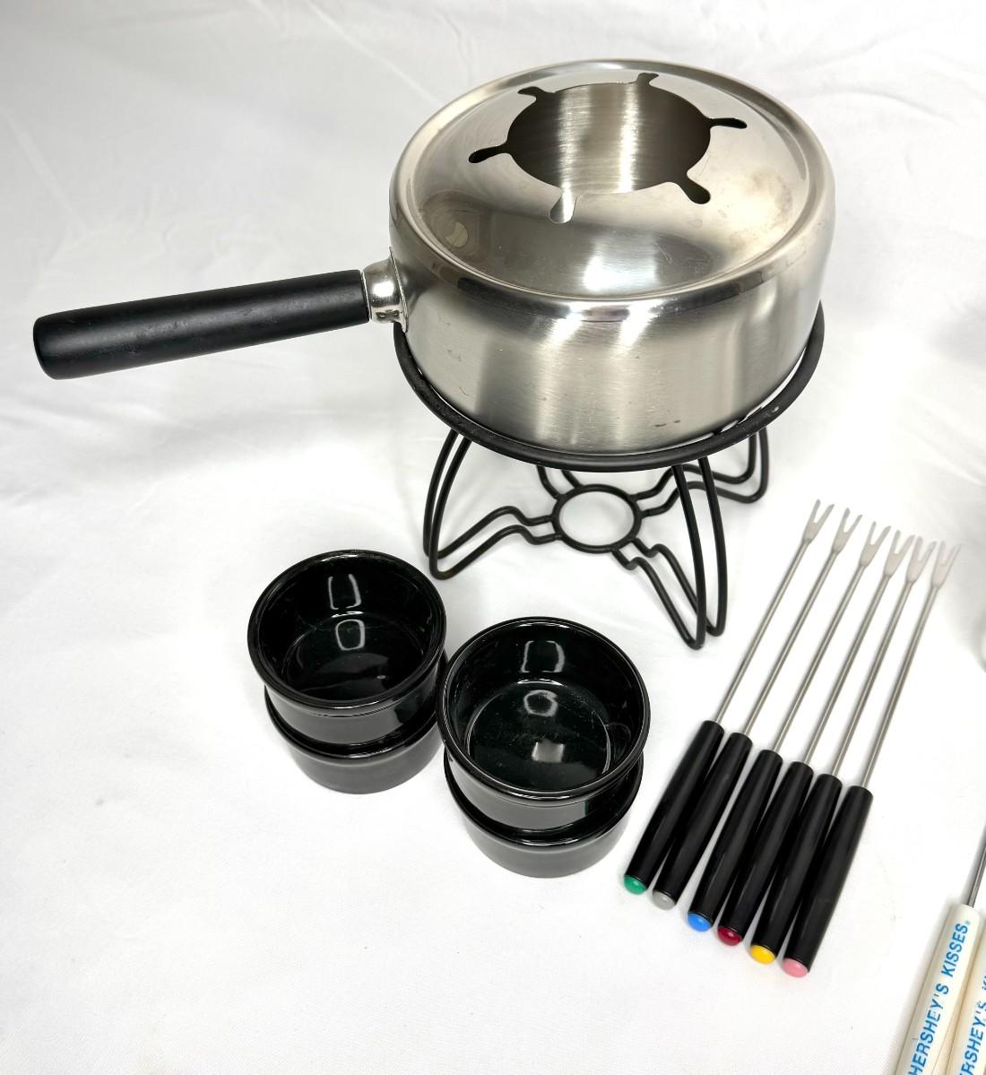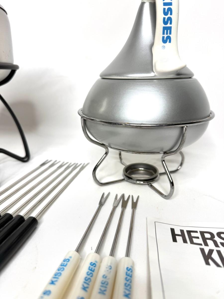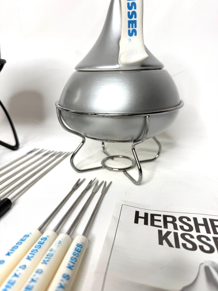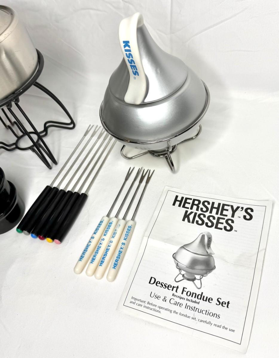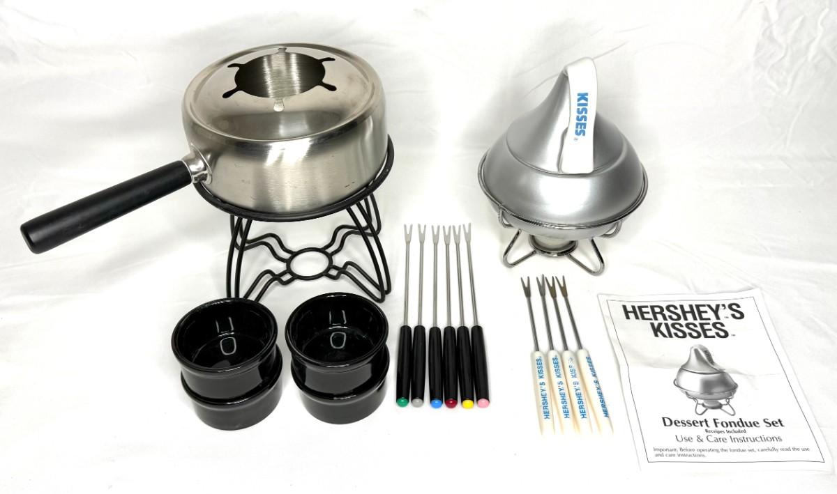 2. Hersheys Ceramic Fondue Set with 4 Forks. Pot measures 5-1/2" dia x 3-1/2" tall (measured with no lid).