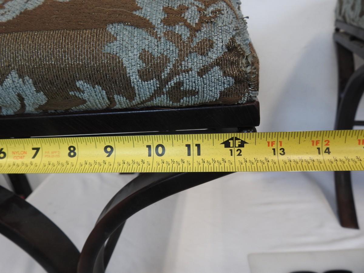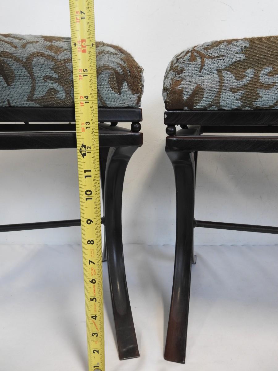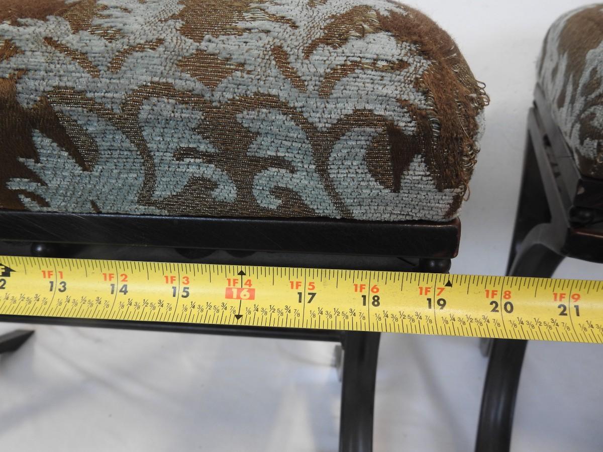 2 Footstool Ottomans. Brown Metal with Brown & Aqua Cushions 16x19x12.5
