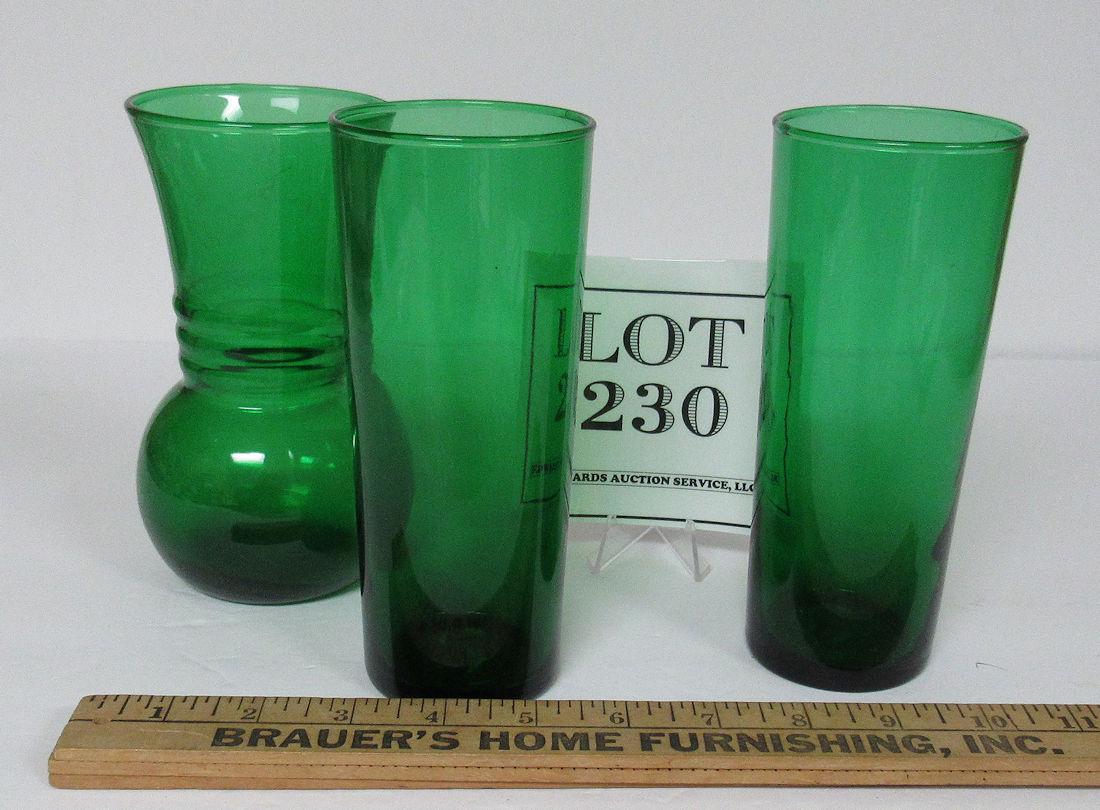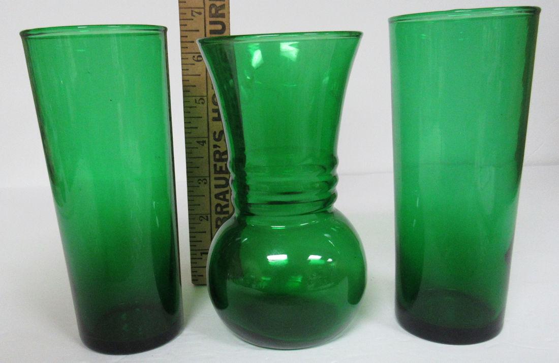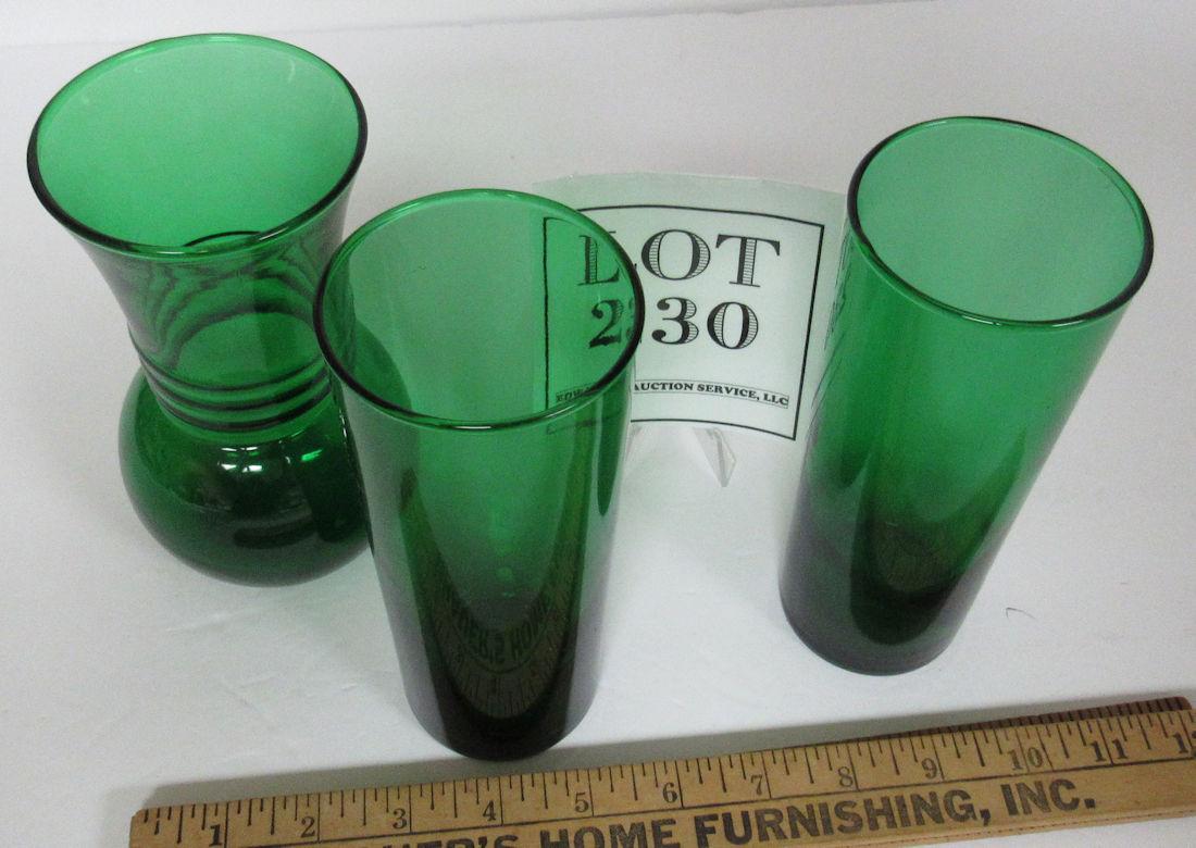 2 Forest Green Lemonaid Tumblers and Forest Green Vase