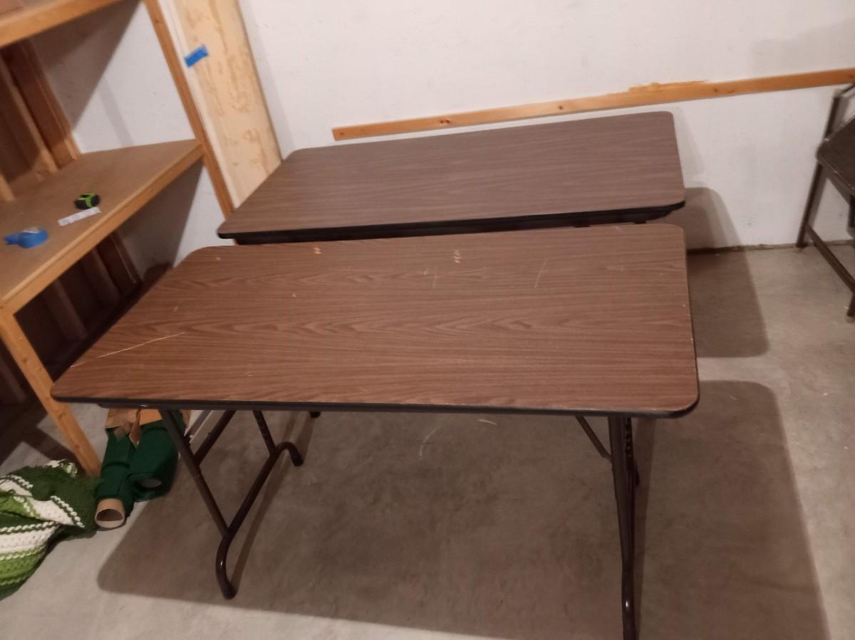 THE TOP OF 1 OF THE TABLES HAS SOME WEAR 4' X 24" X 29"