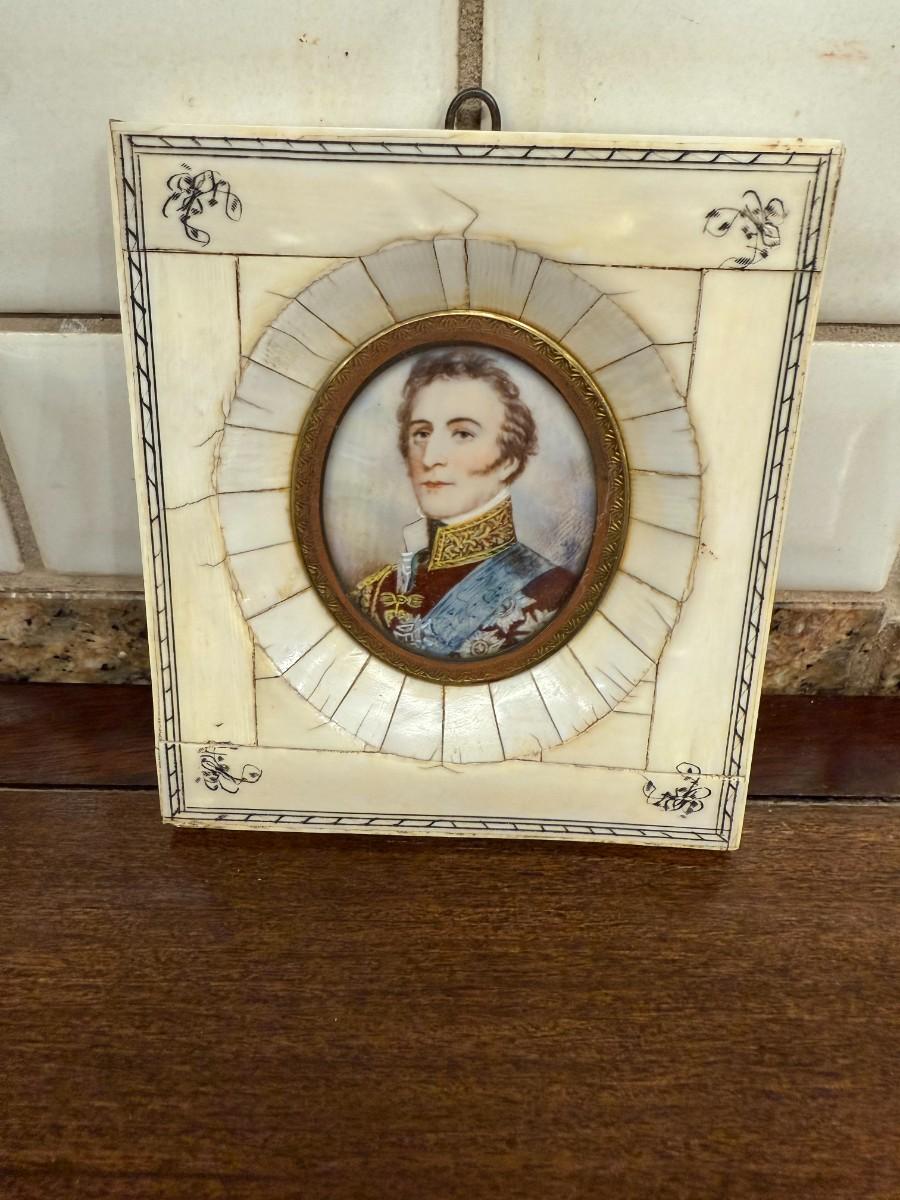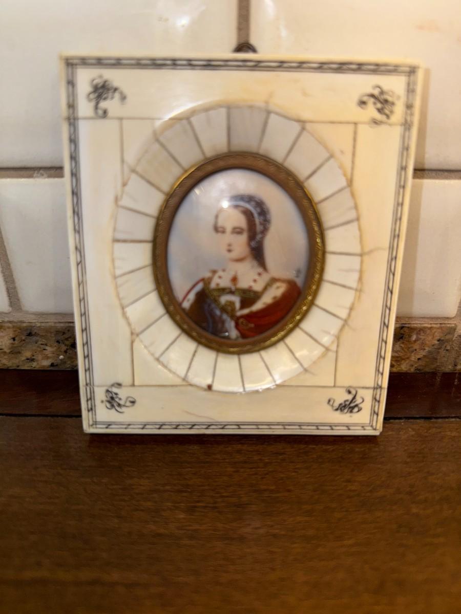 2 Framed Antique Miniature Portraits of Simon Bolivar and Lady Jane Grey