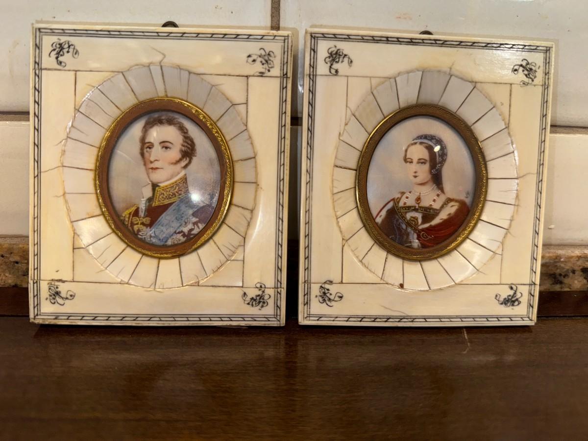 Pre-owned. Portraits of Simon Bolivar and Lady Jane Grey aka the "Nine Day Queen". 2.5in x 2in Frames.