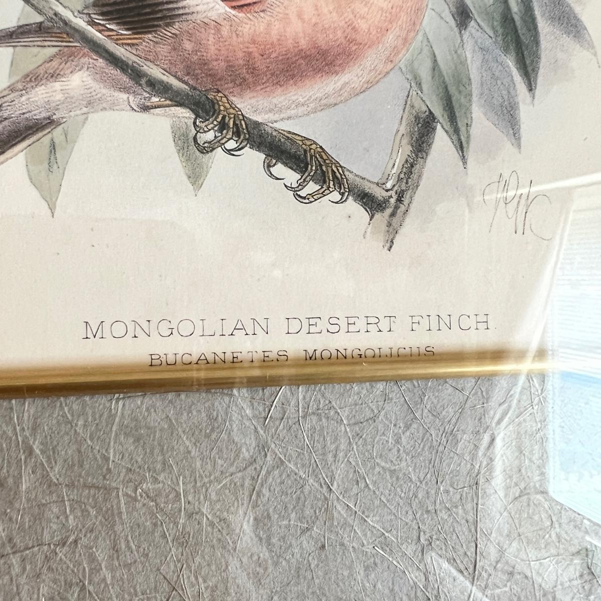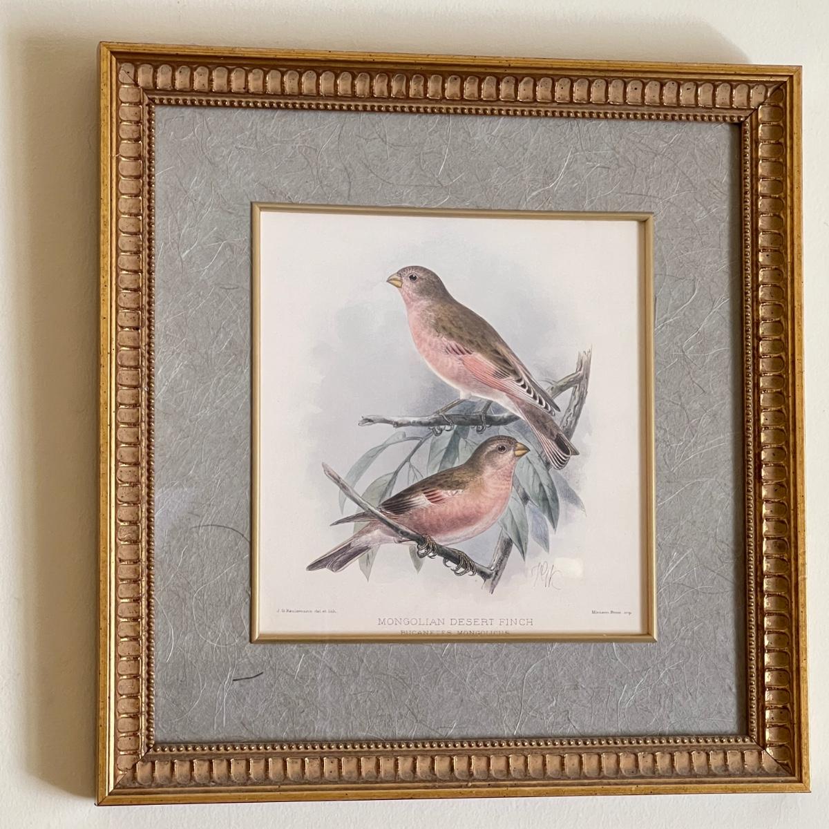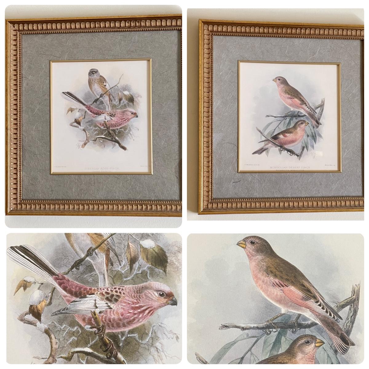 Vintage Pair Framed Mintern Bros. Imports Mongolian Desert & Siberian Rose Finch Art