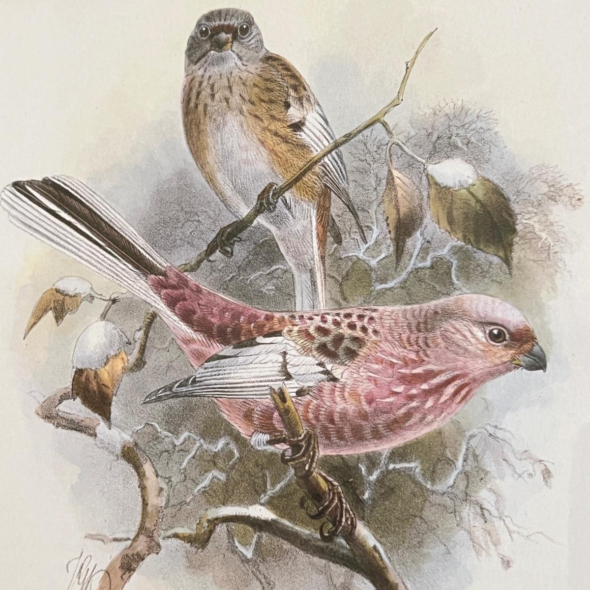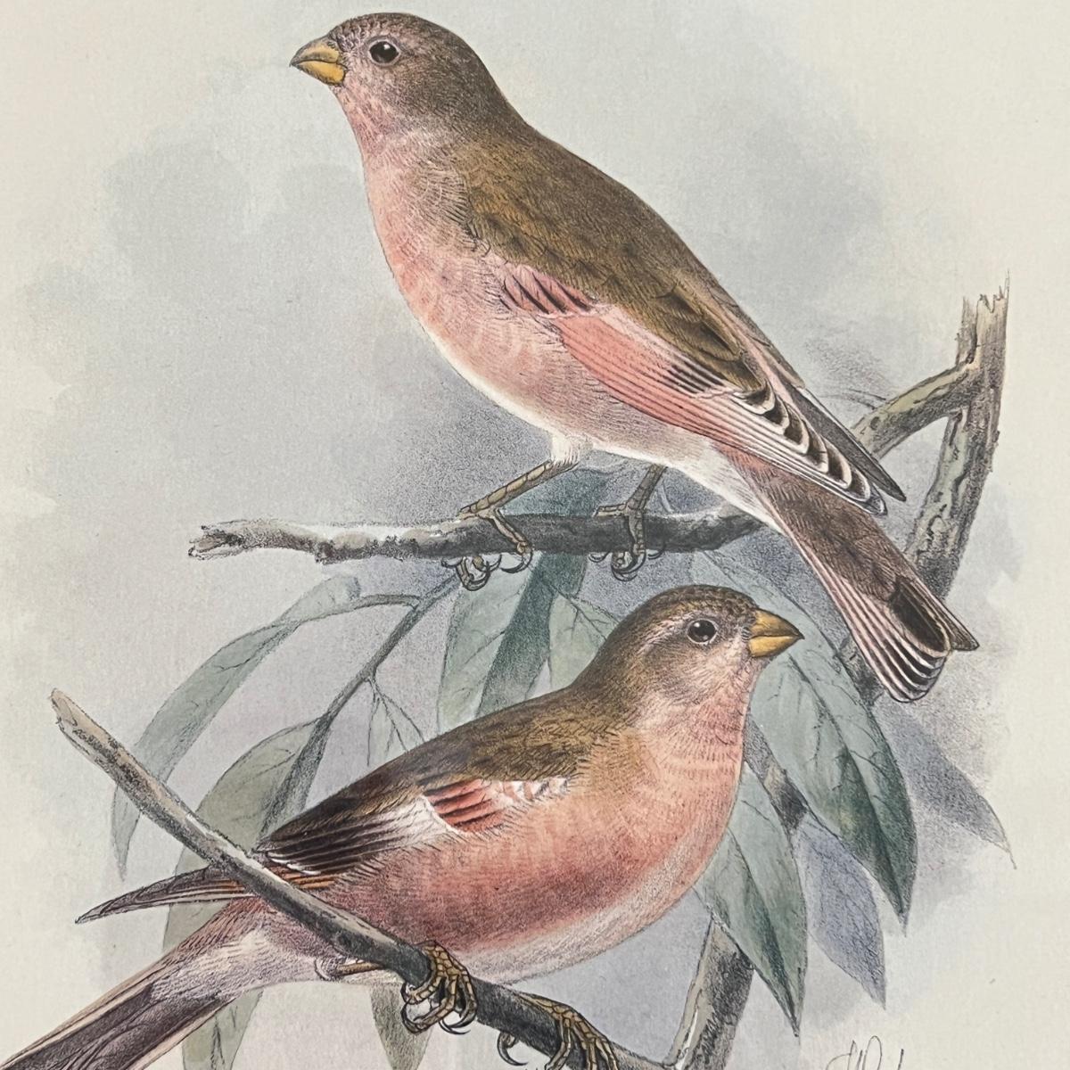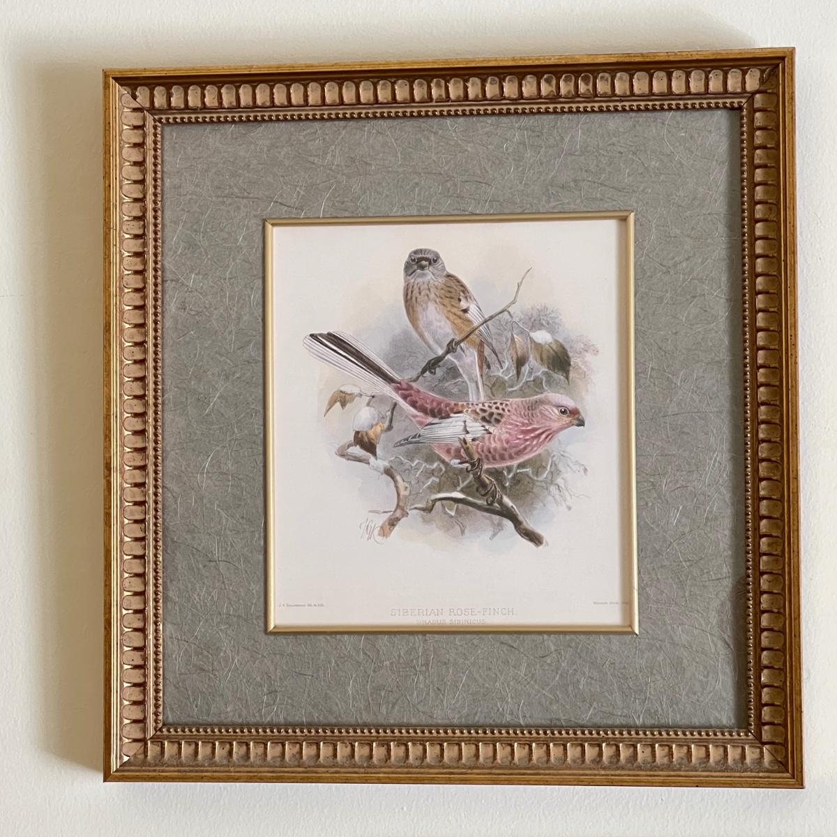 Vintage Pair Framed Mintern Bros. Imports Mongolian Desert & Siberian Rose Finch Art