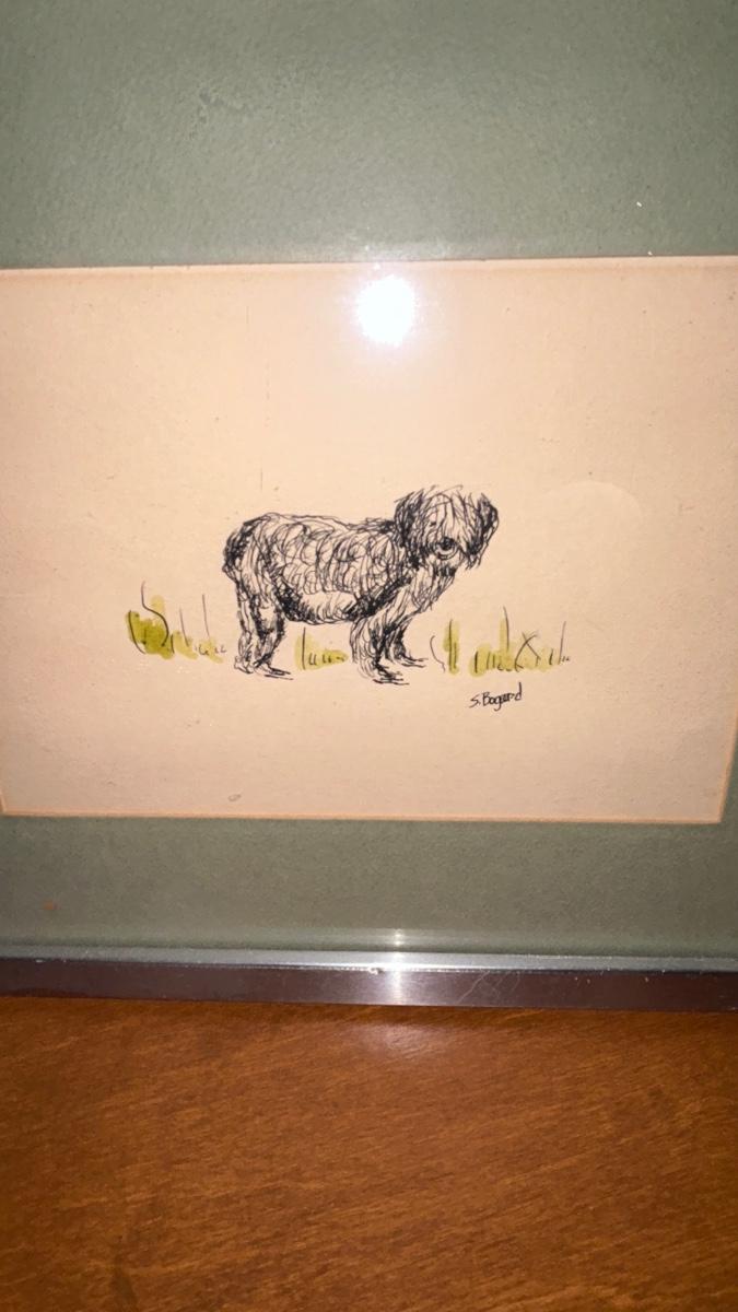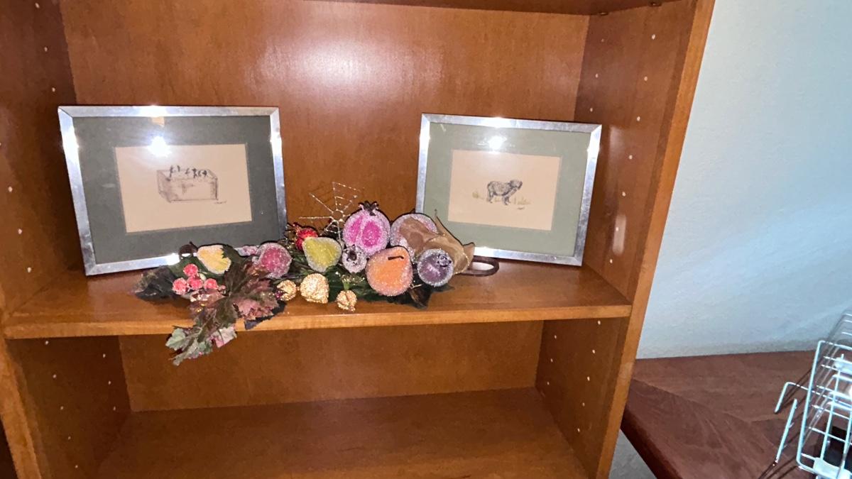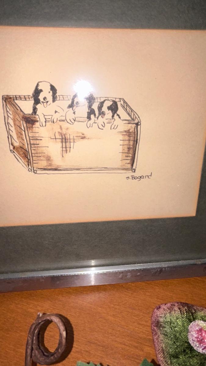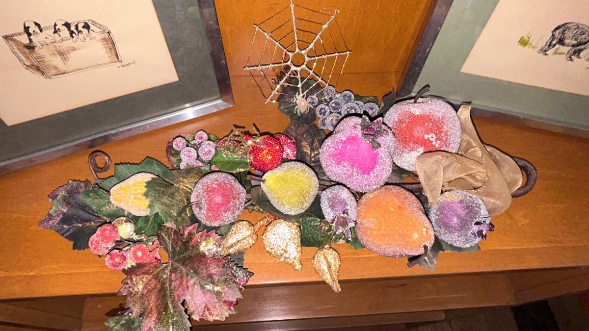 2 FRAMED DRAWINGS BY J. BOGARD AND FRUIT SWAG