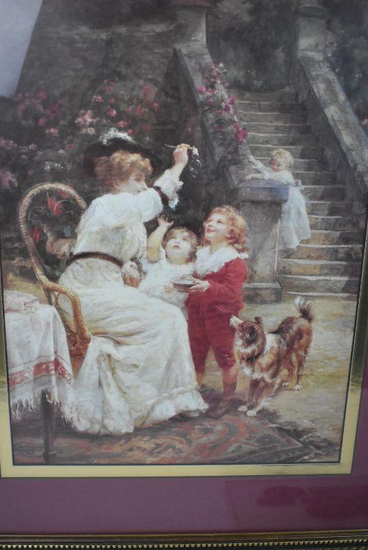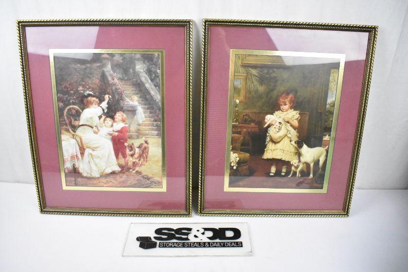 2 Framed Images by Charles Burton Barber: Girl with Dogs & Innocence. Maroon & Gold Mats/Frames 18.5" x 22.5"