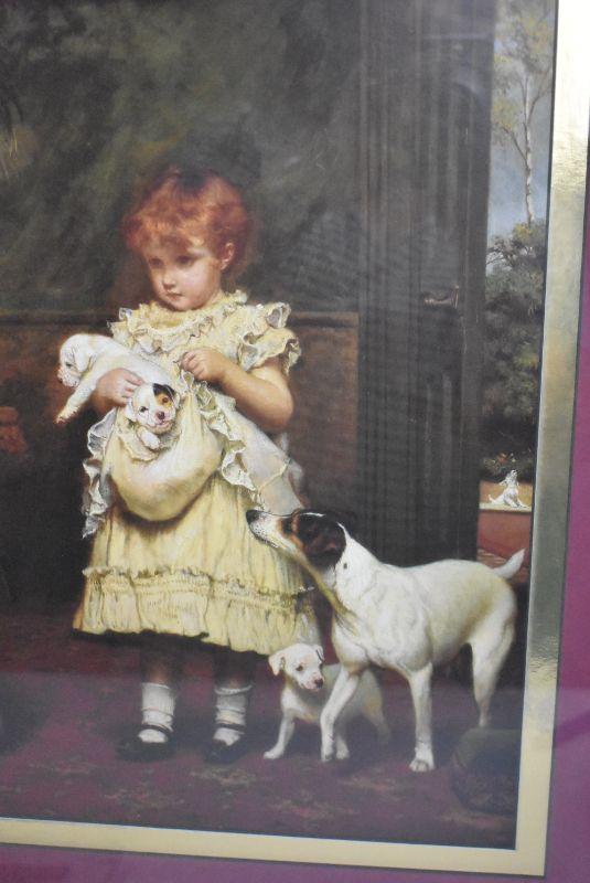 2 Framed Images by Charles Burton Barber: Girl with Dogs & Innocence