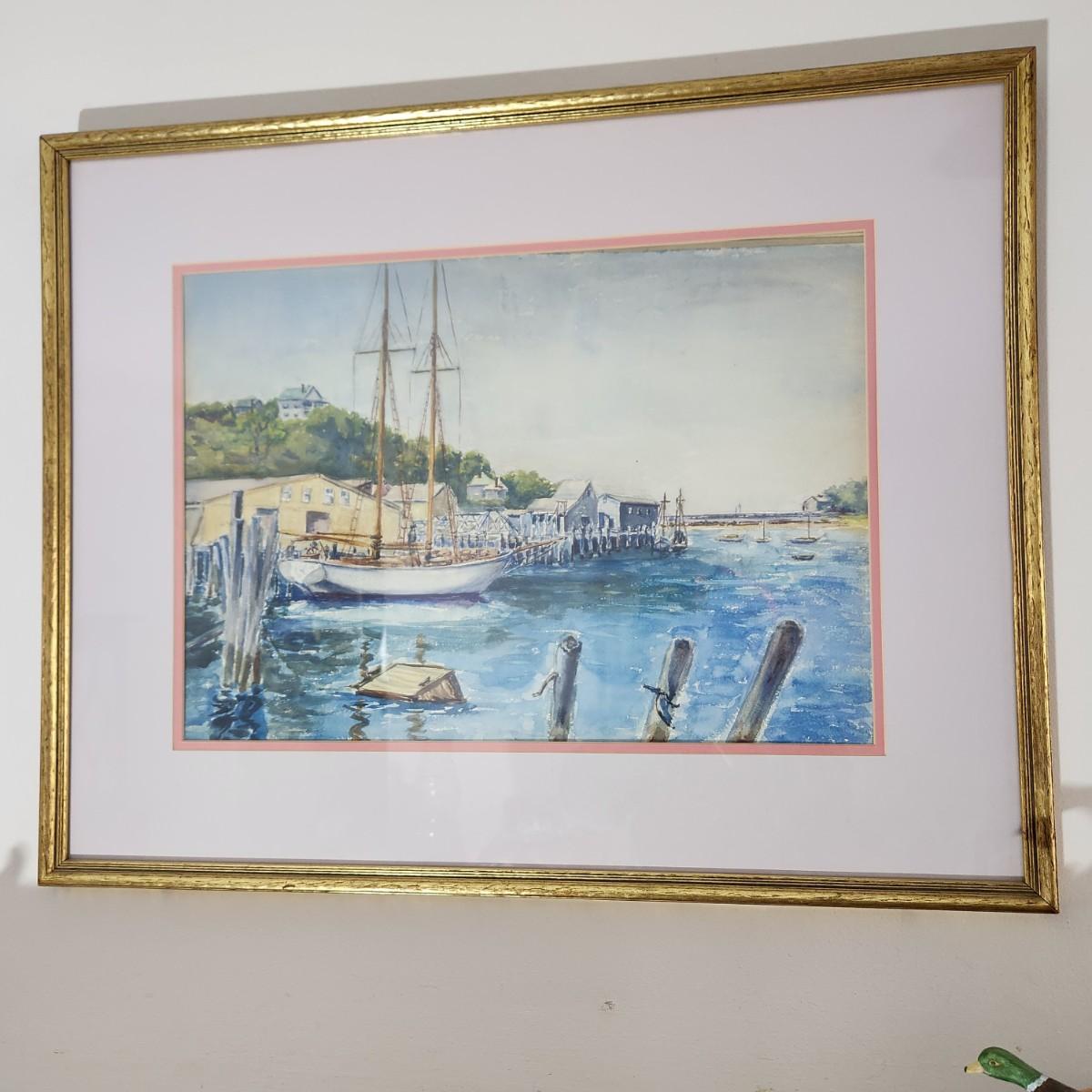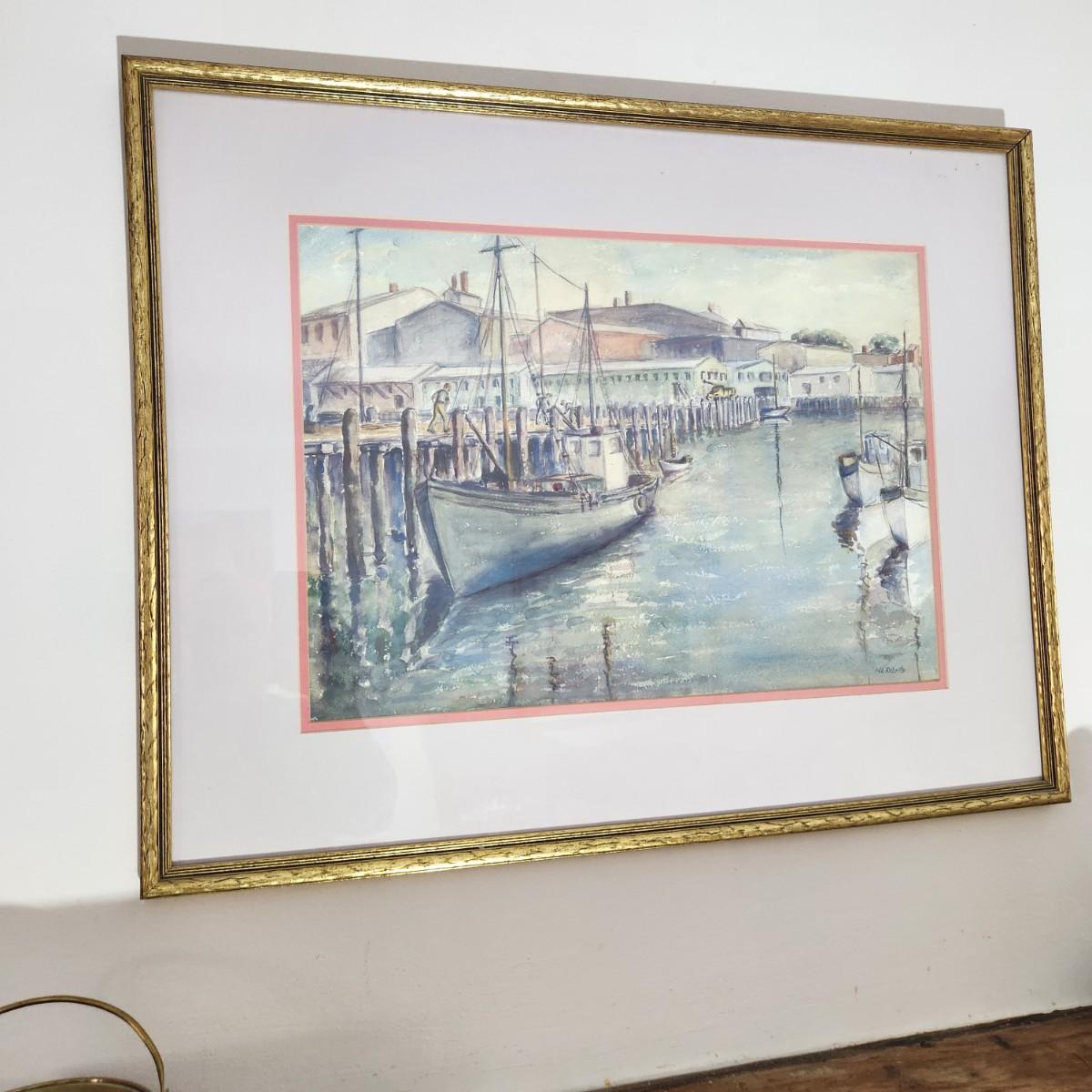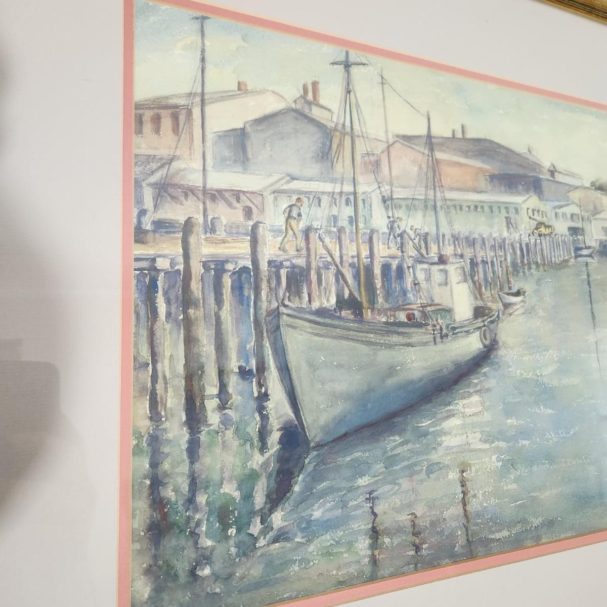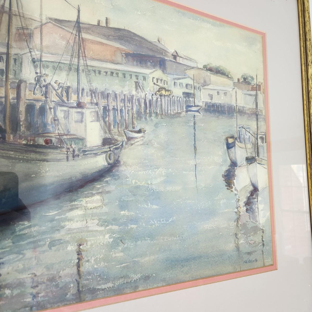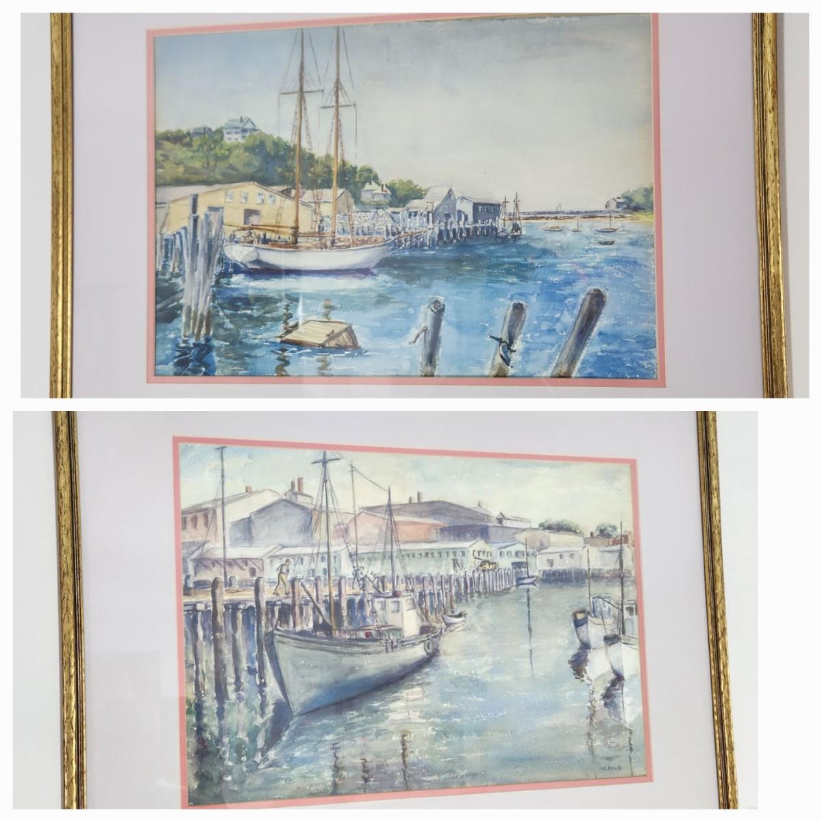 2 Framed Matted Paintings H.L. Roberts Seaports Water Ships