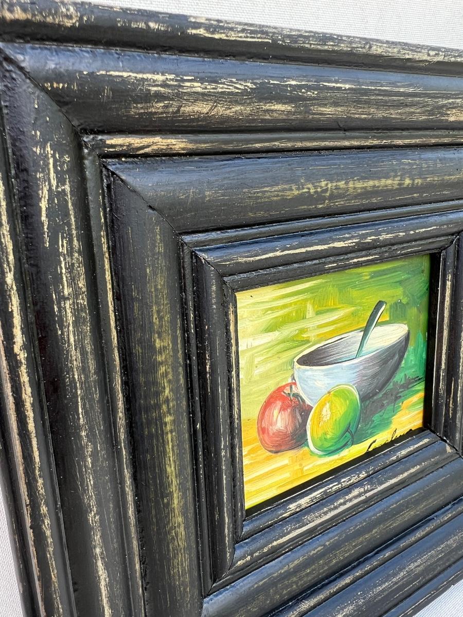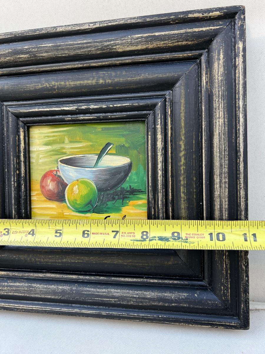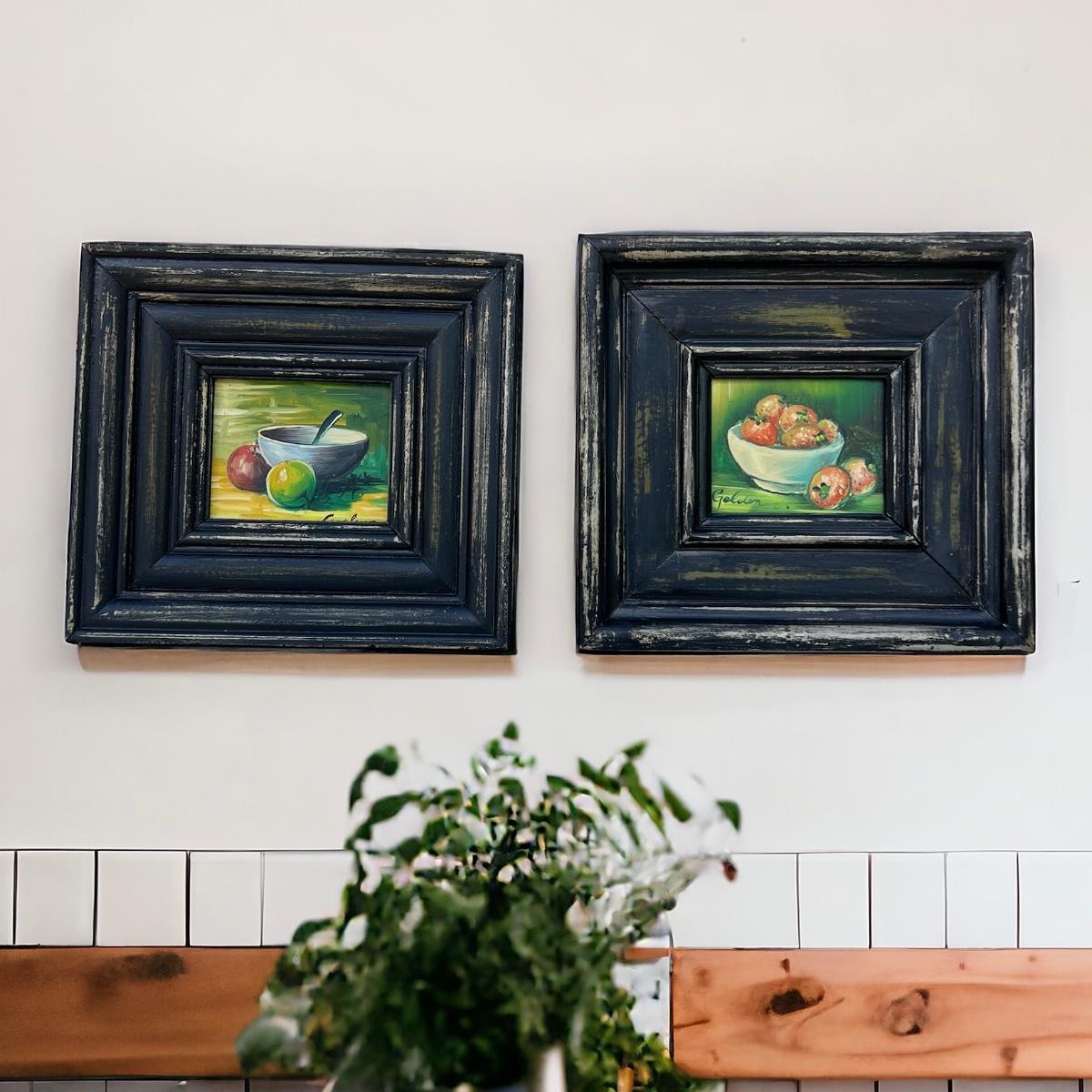 Rustic frames on 2 small original signed oil paintings. Fruit and bowls - great for a kitchen!