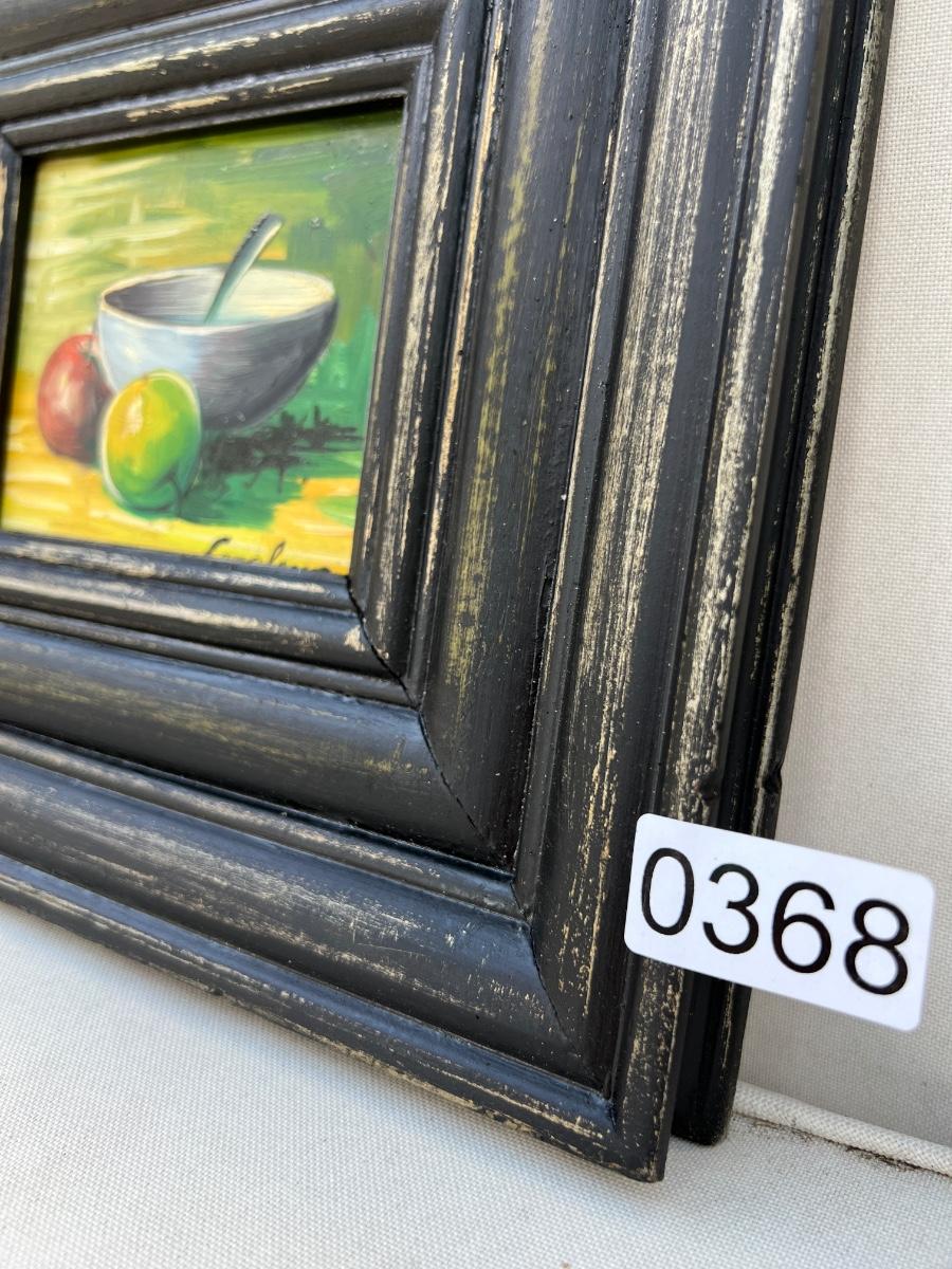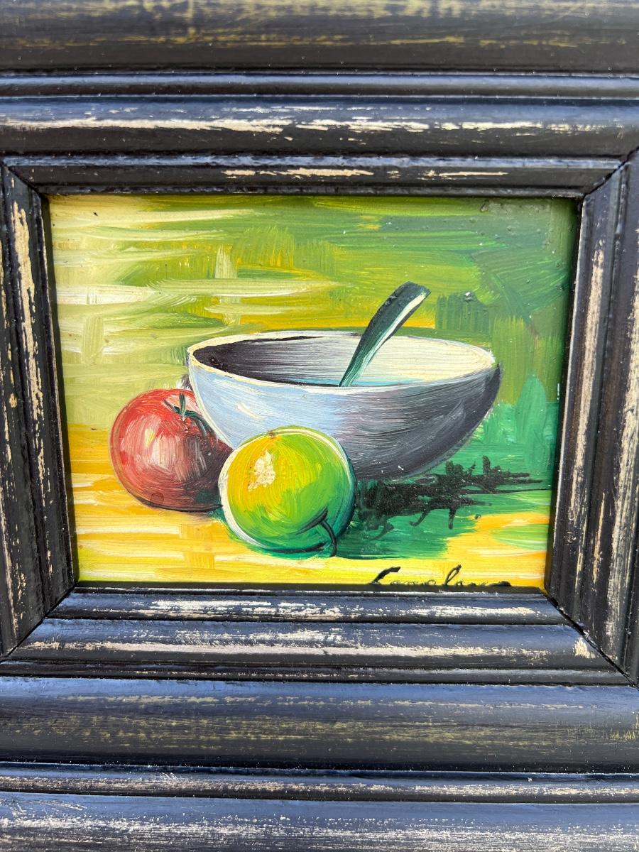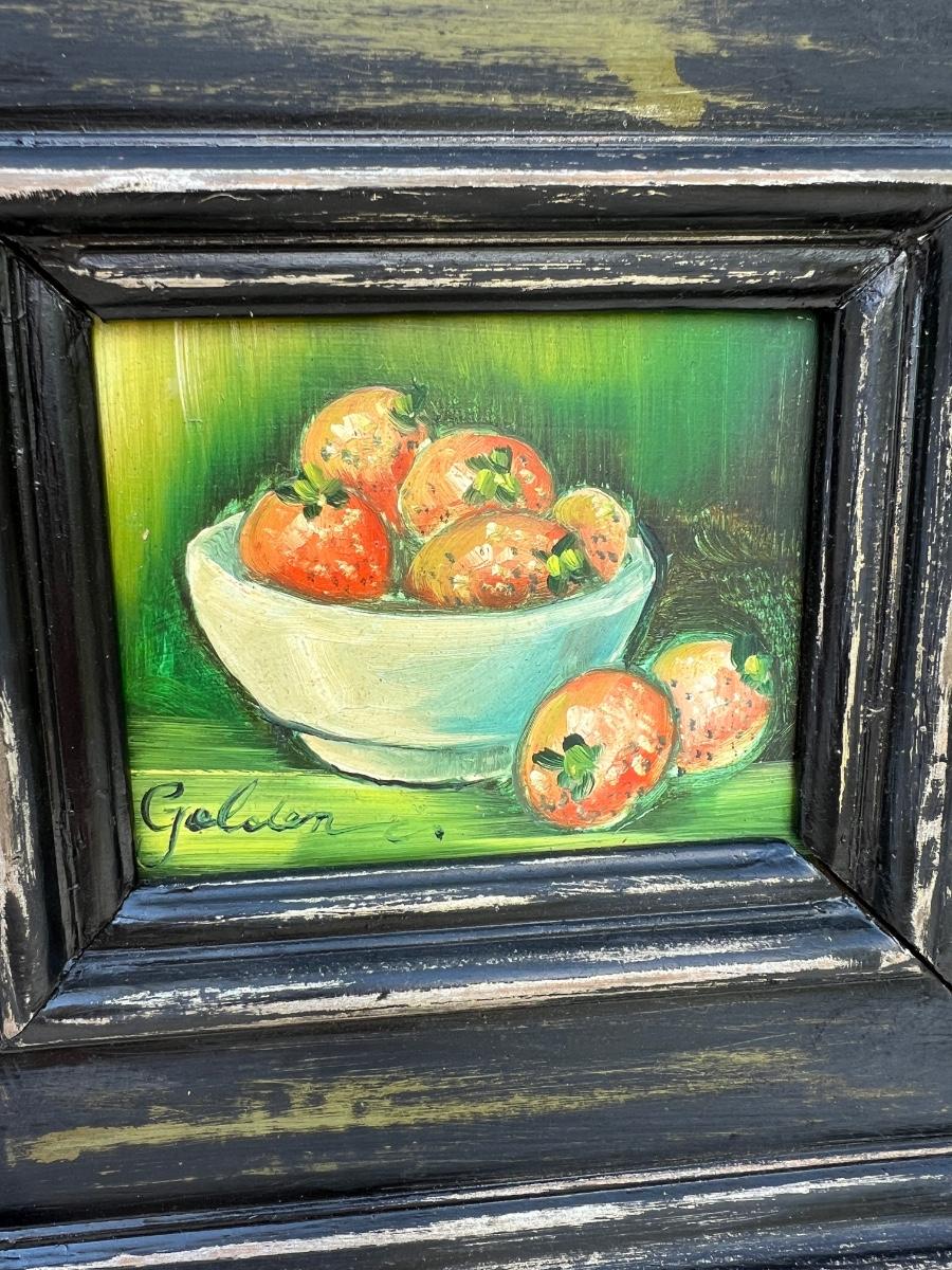 Rustic frames on 2 small original signed oil paintings. Fruit and bowls - great for a kitchen!