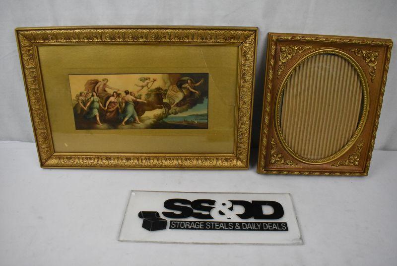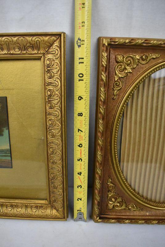 2 Frames, Wood painted Gold. 1 oval 1 rectangle
