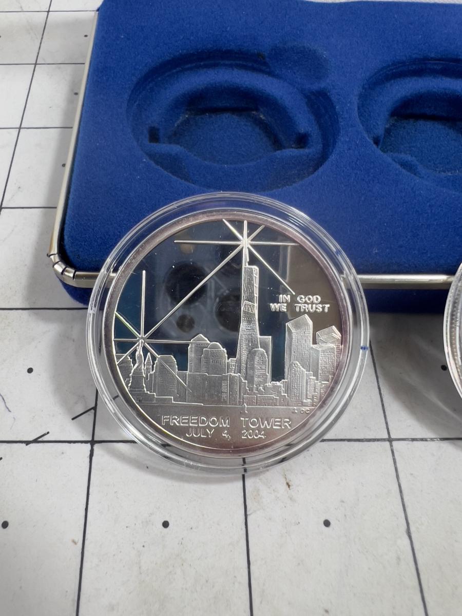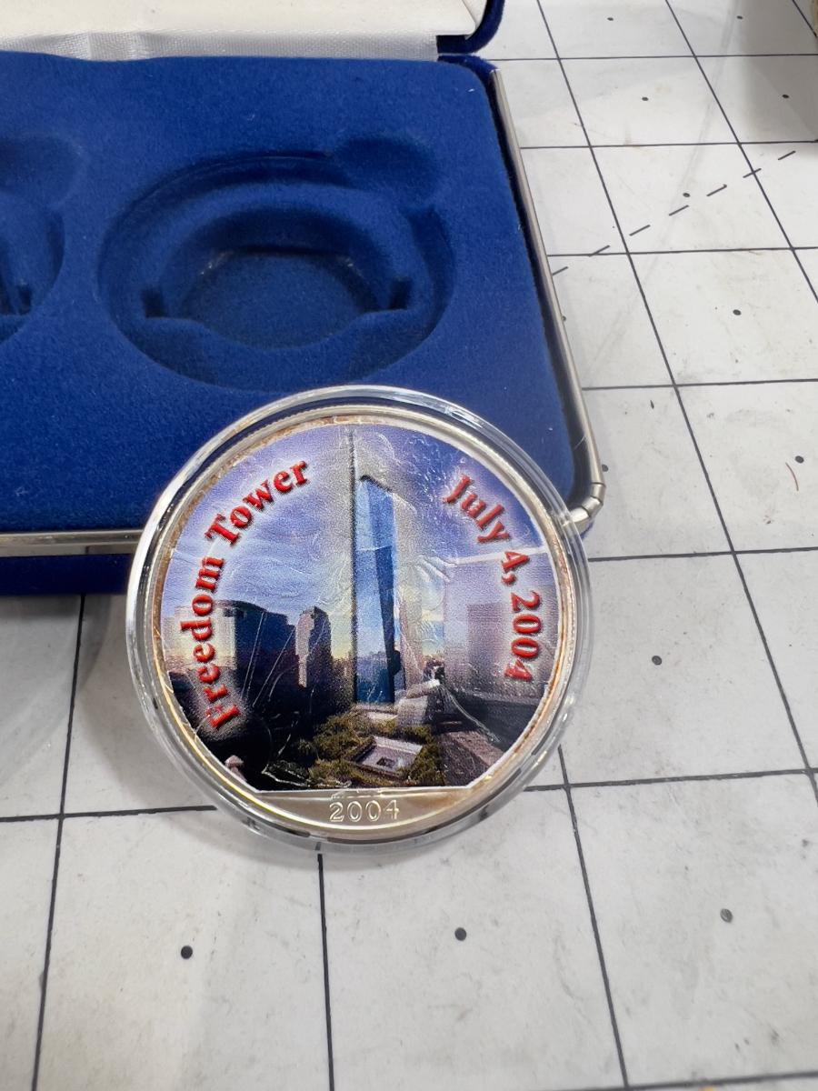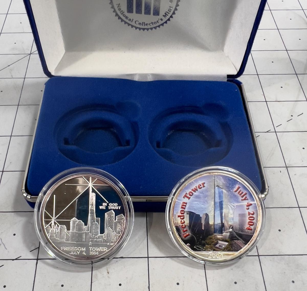 2 Freedom Tower Commemorative Coins, Appear to be .999 Silver