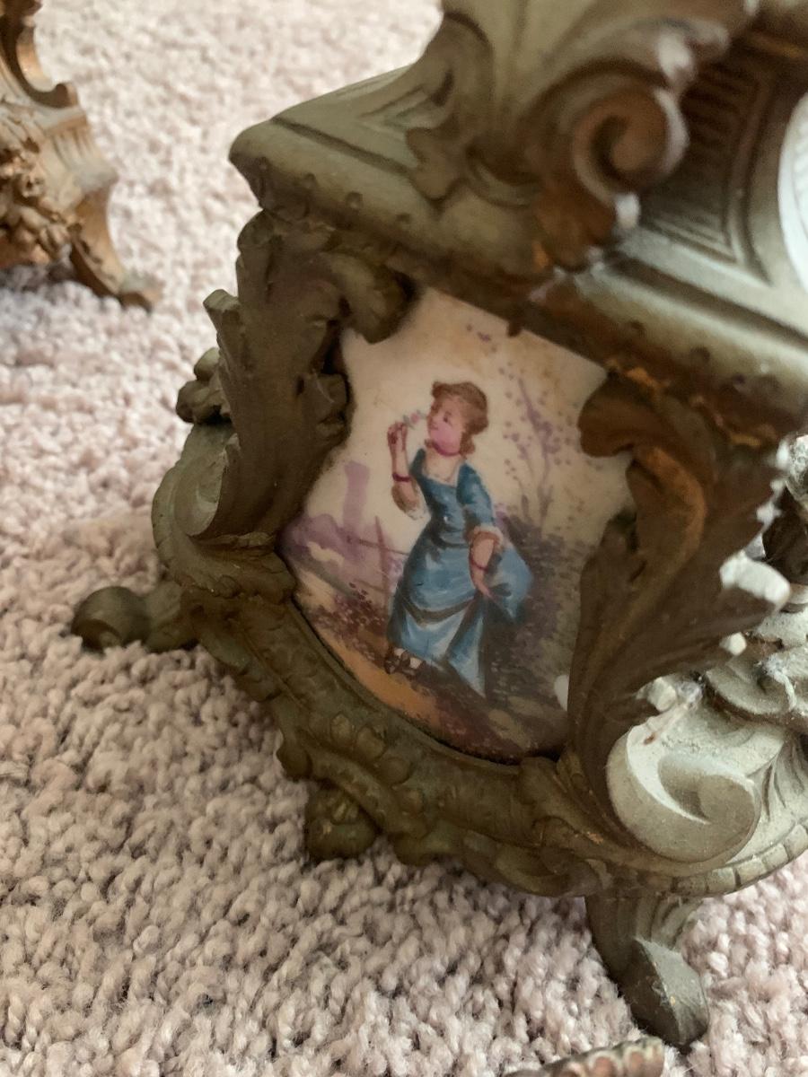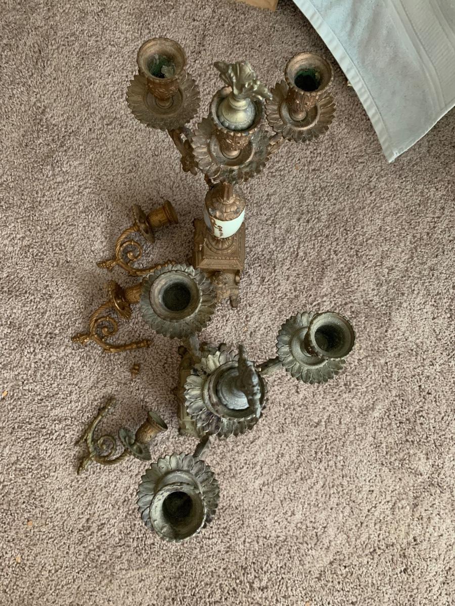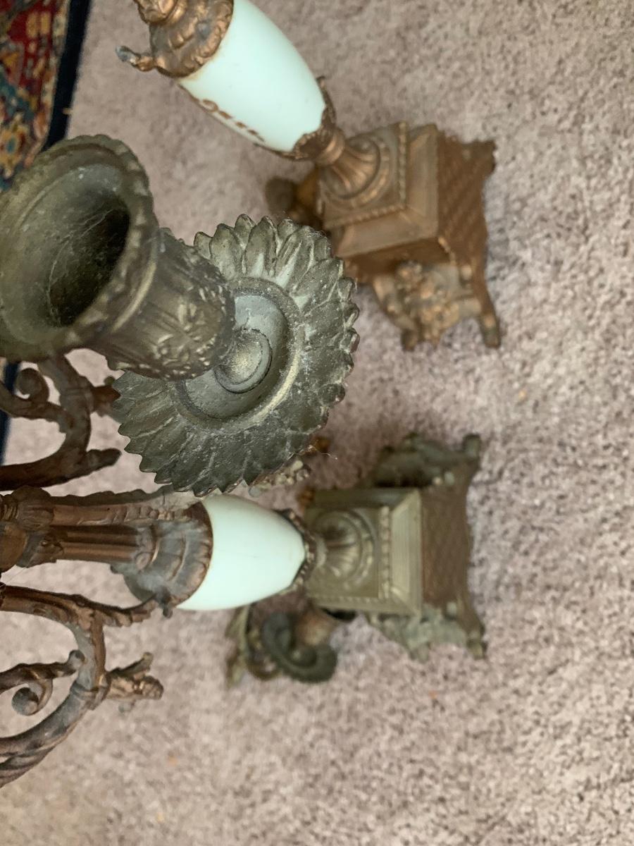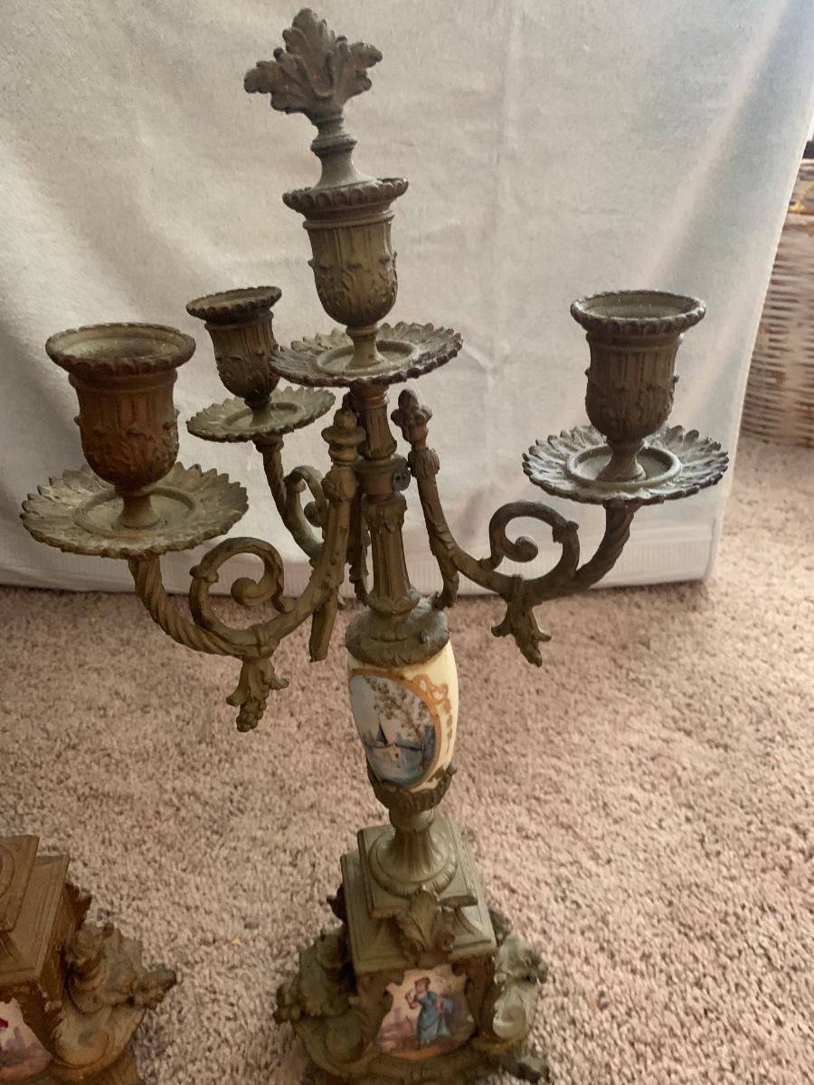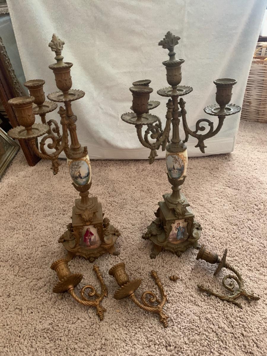 2 French porcelain and metal candelabras 21"H 10"diameter