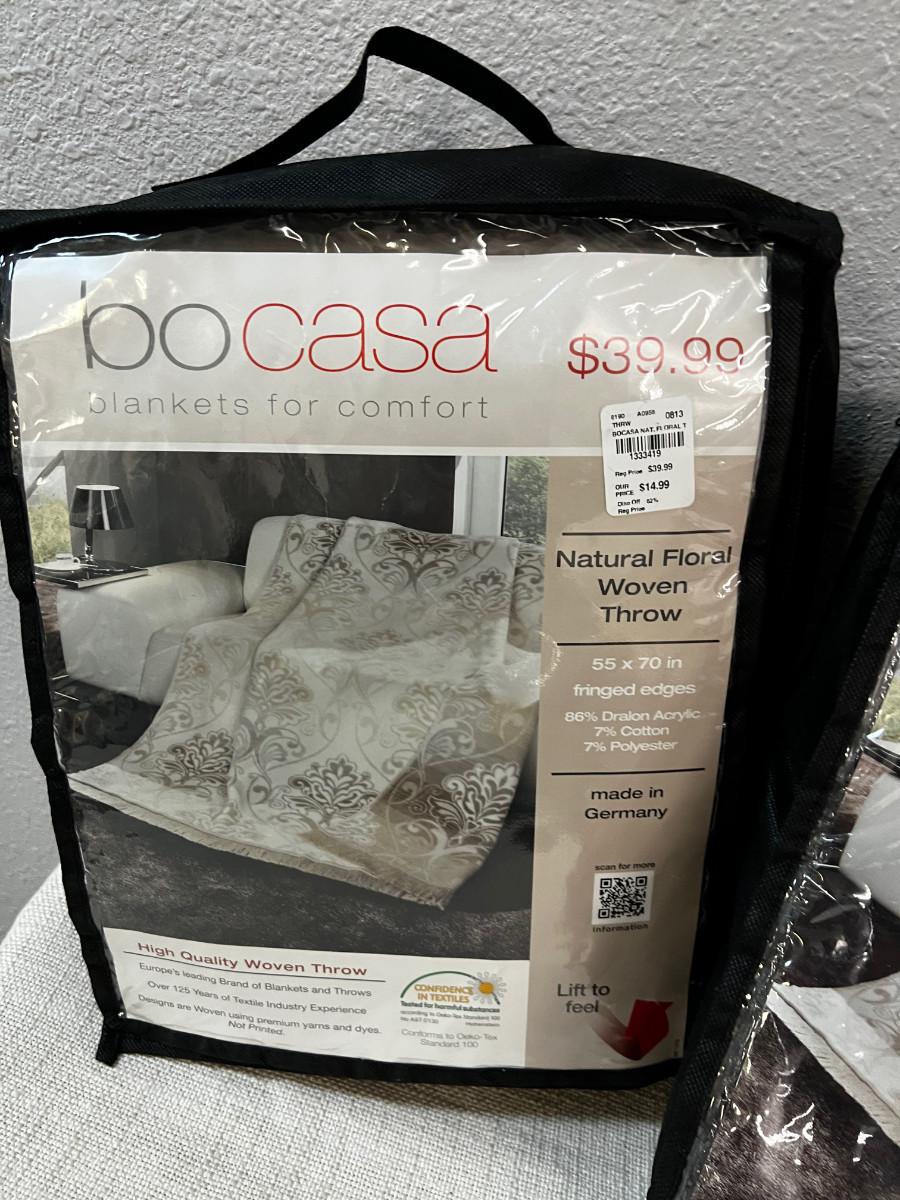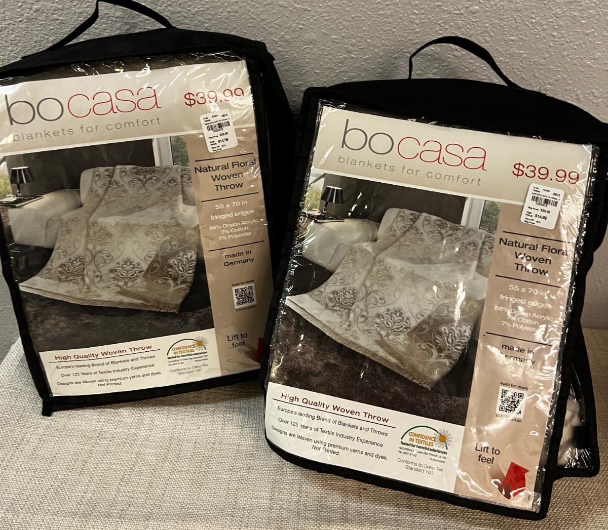 2 Fringed Throws Natural Floral Woven Throw NEW