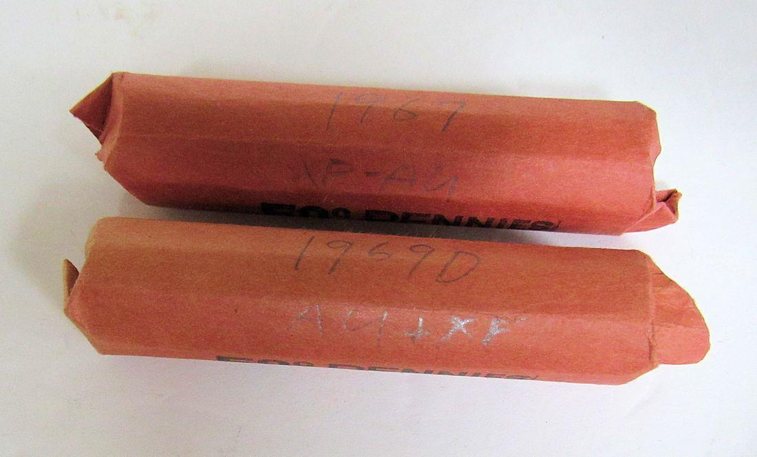 2 Full Penny Rolls: 1967P and 1969D, XF-AU