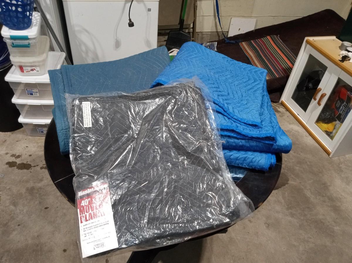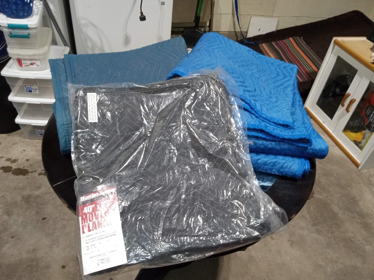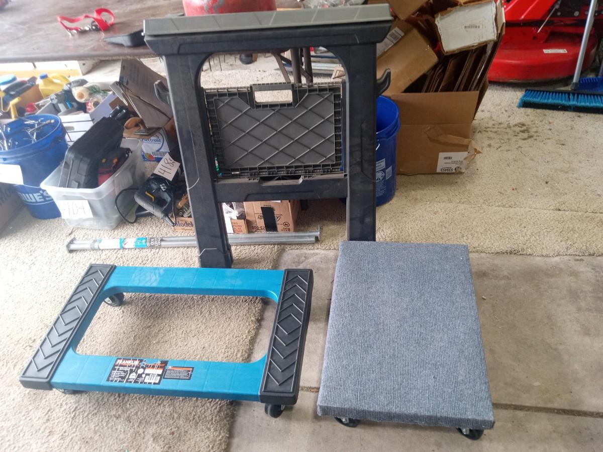 2 FURNITURE MOVERS, 1 SAW HORSE AND 3 MOVING BLANKETS