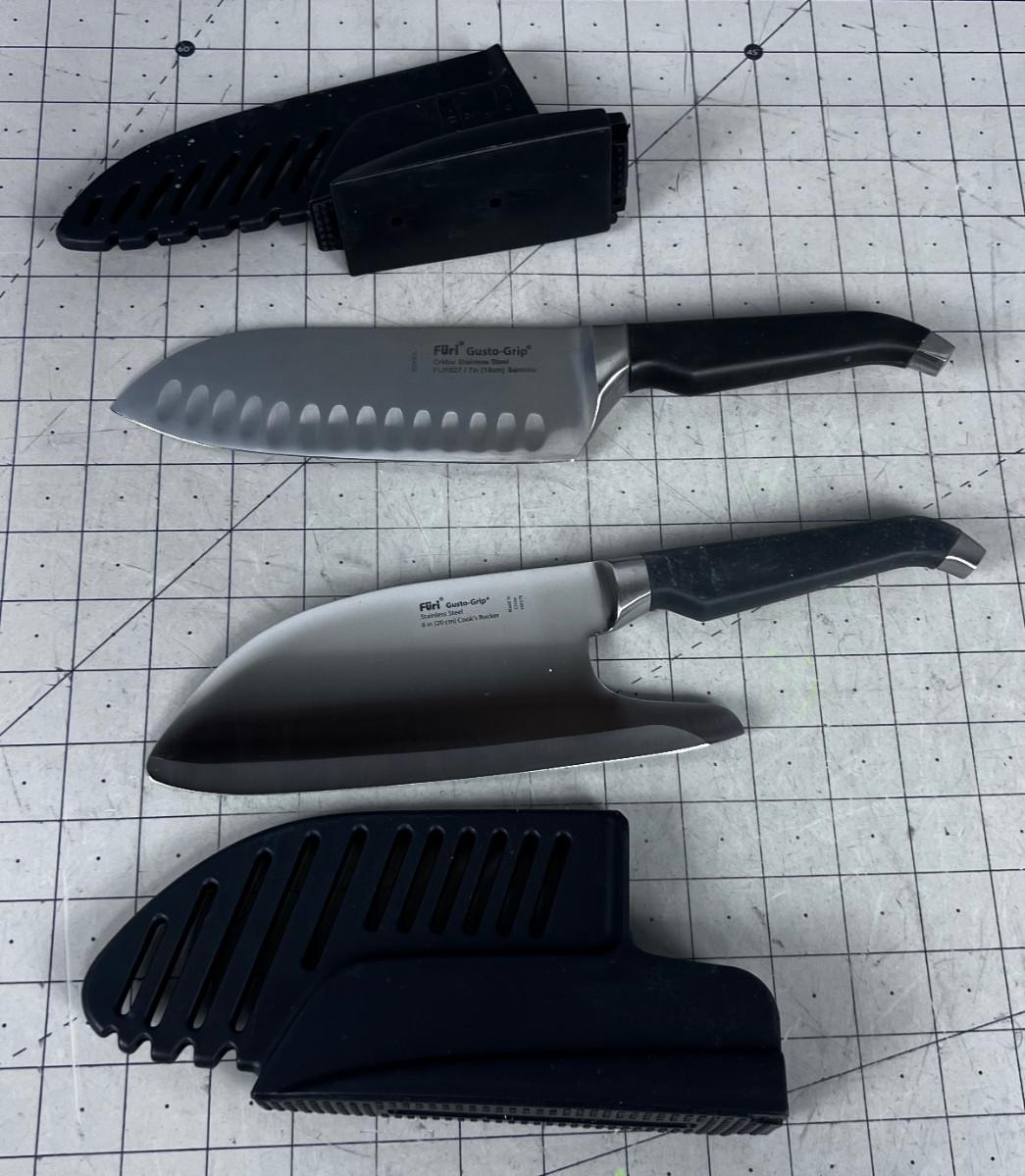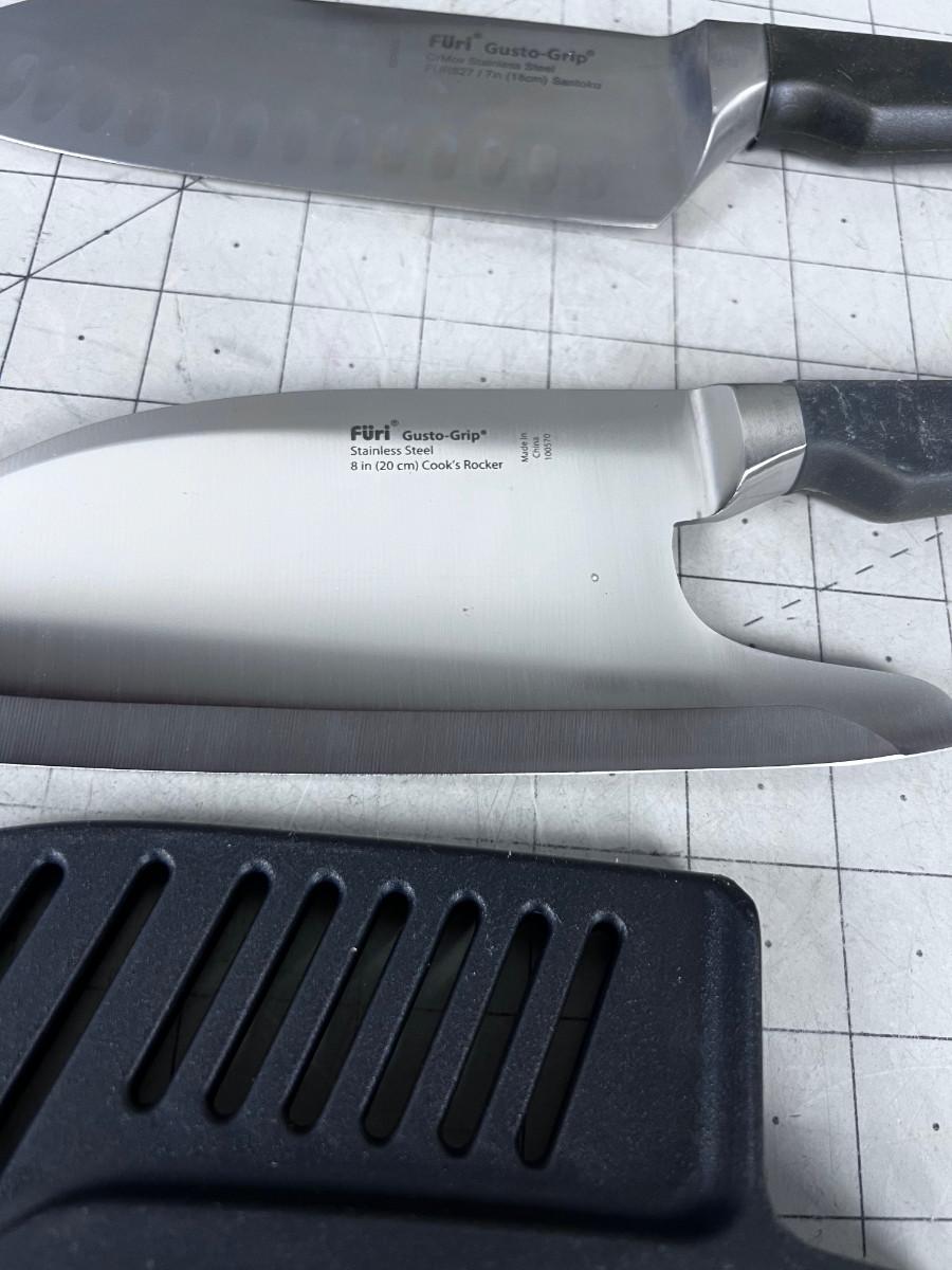 NICE!! Probably never used. LIKE NEW! One is a Chefs Rocker and A Santoku! WOW! If you cook you need these!.