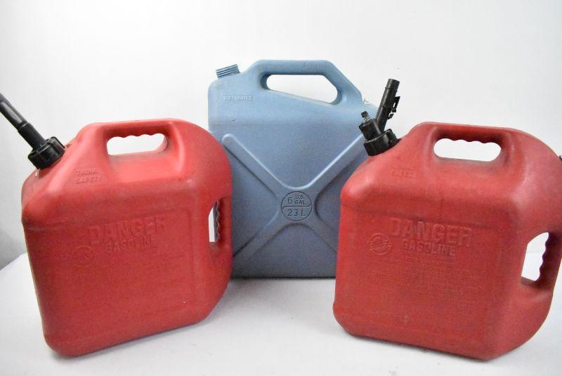 2 Gas Cans (5 Gallons Each) & 1 Water Can (6 Gallons)