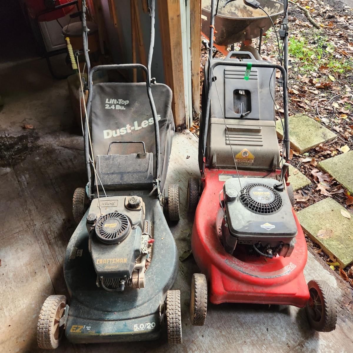 2 Gas Lawn Mowers Craftsman Eager 1 MTD HP Both has Compression Not Tested