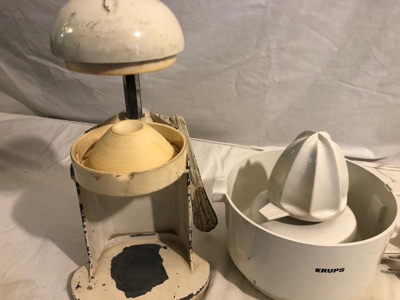 1 vintage 1940’s metal  Rival “Juice O Mat” juicer with rotating arm and 1 Krups electric juicer Krups and Rival