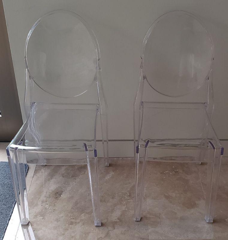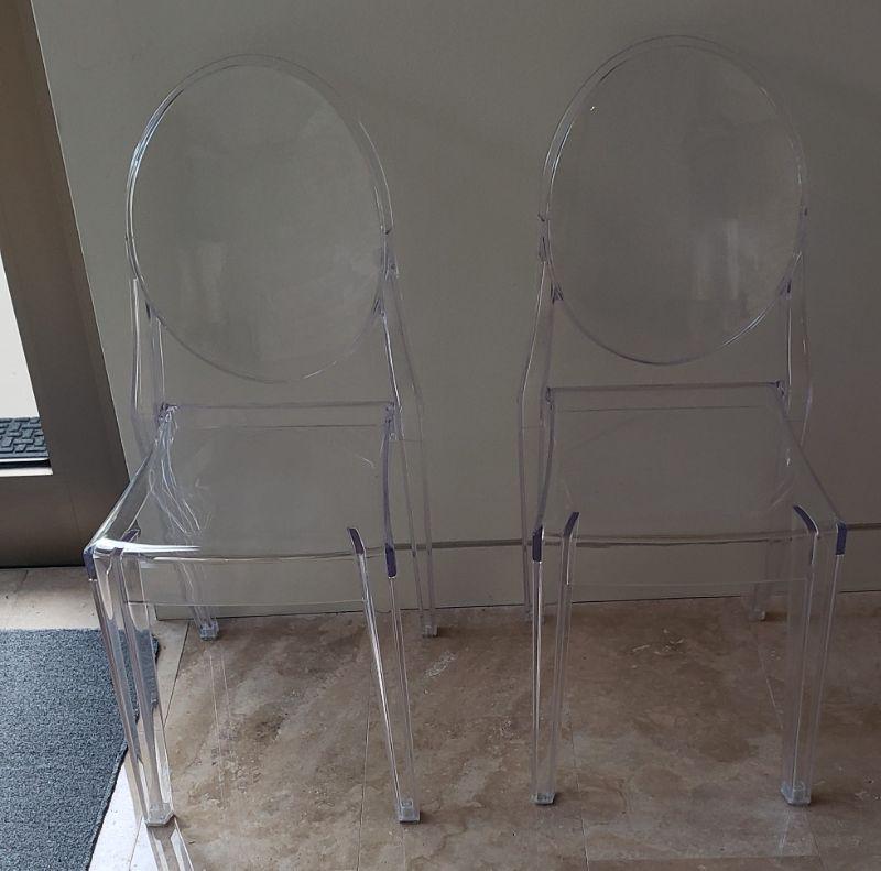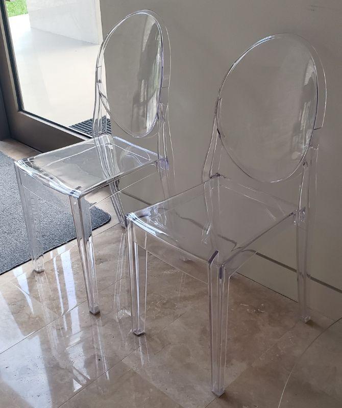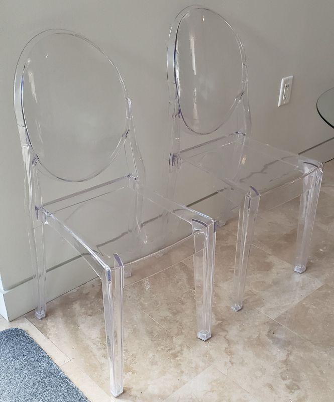 2 Ghost Chairs with Oval Back in Transparent Crystal