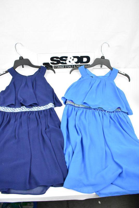2 Girls Dresses. Navy Blue Size 10, Blue Size 12