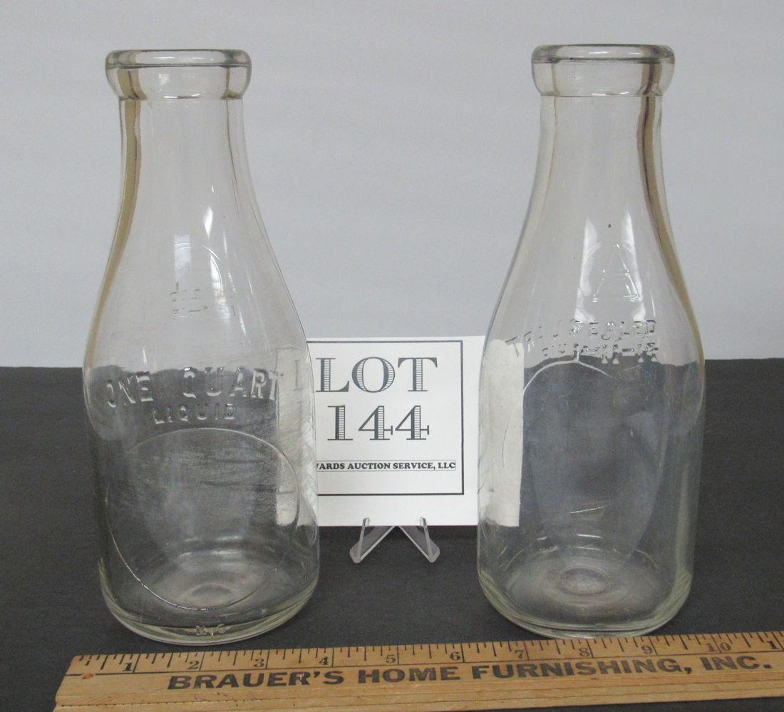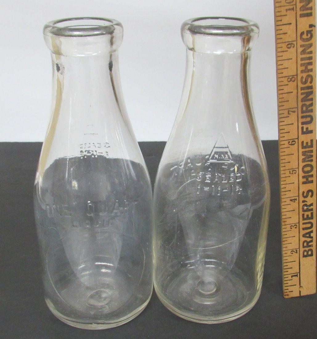 2 Glass Bottles, 1 Quart, Unknown Company