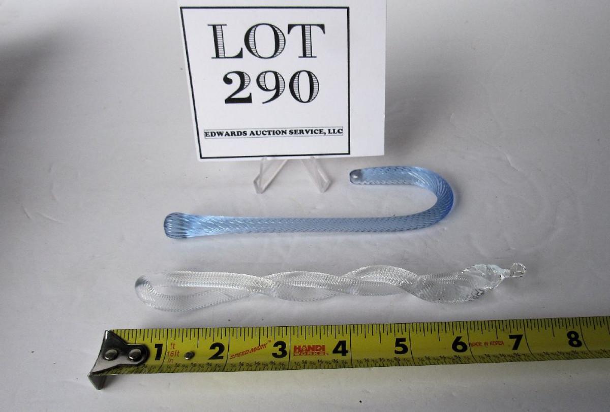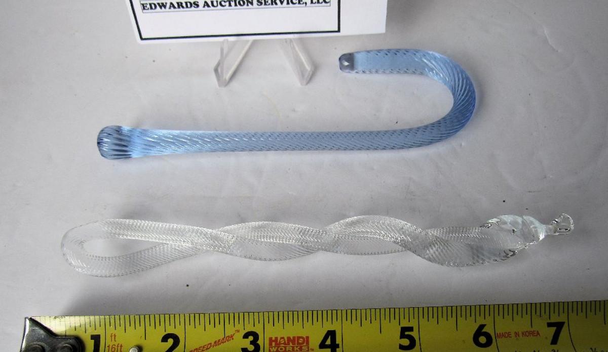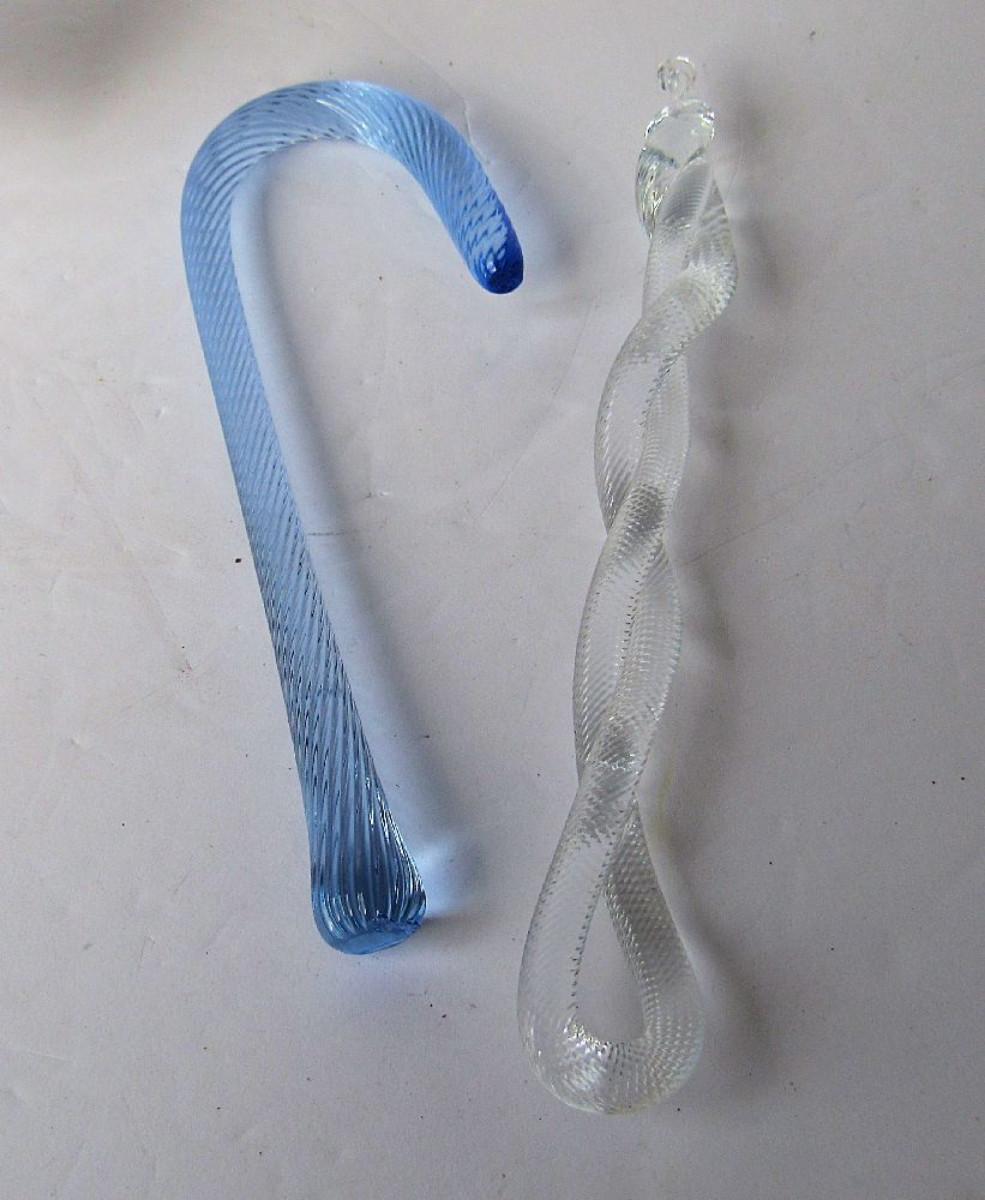 2 Glass Christmas Ornaments, Gibson Glass Candy Cane, Twisted Icicle
