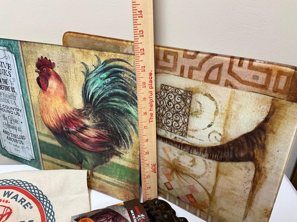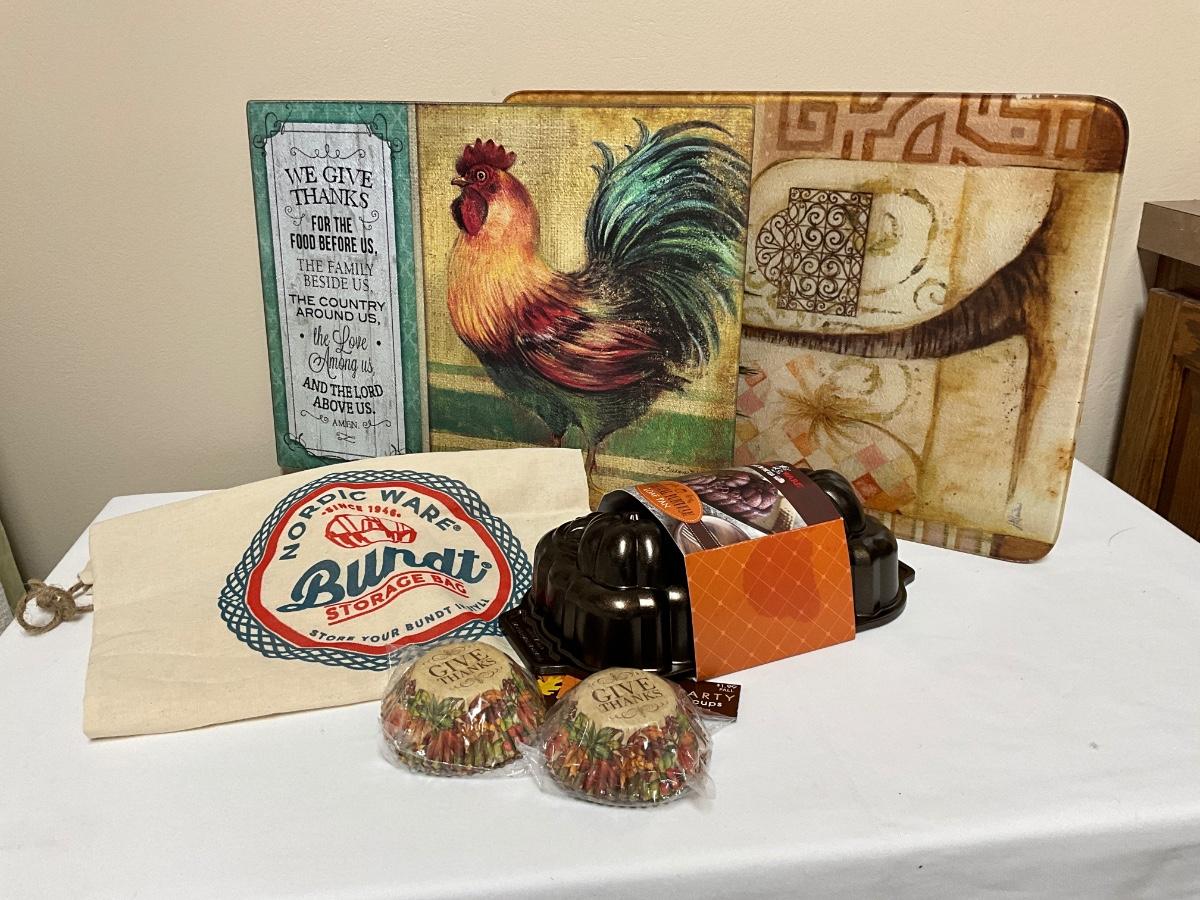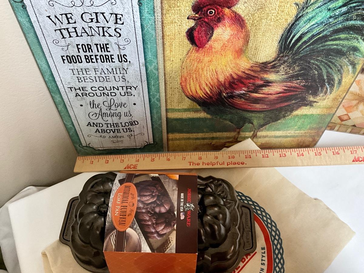 2 Glass cutting boards, pumpkin baking dish, fall muffin cups