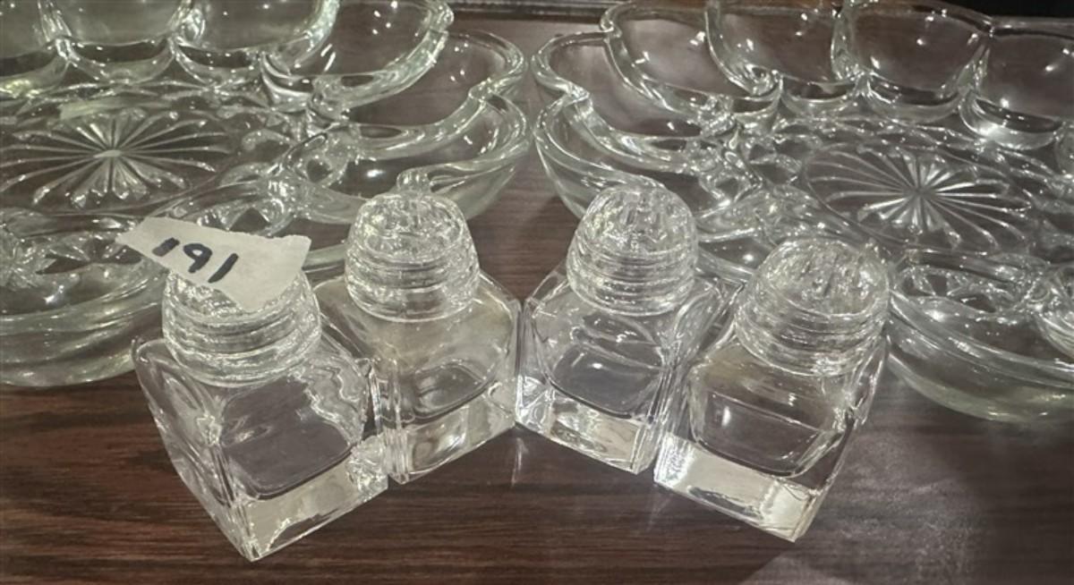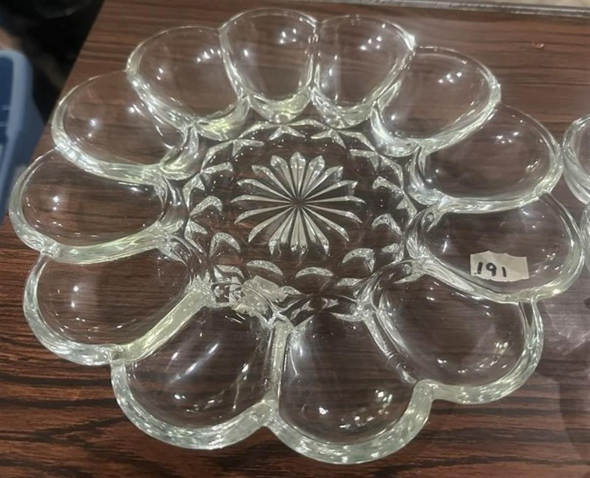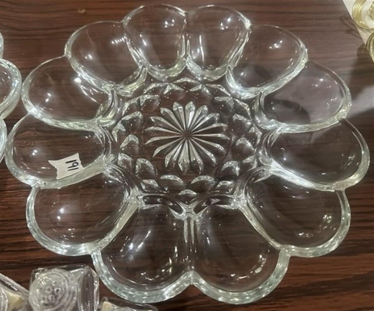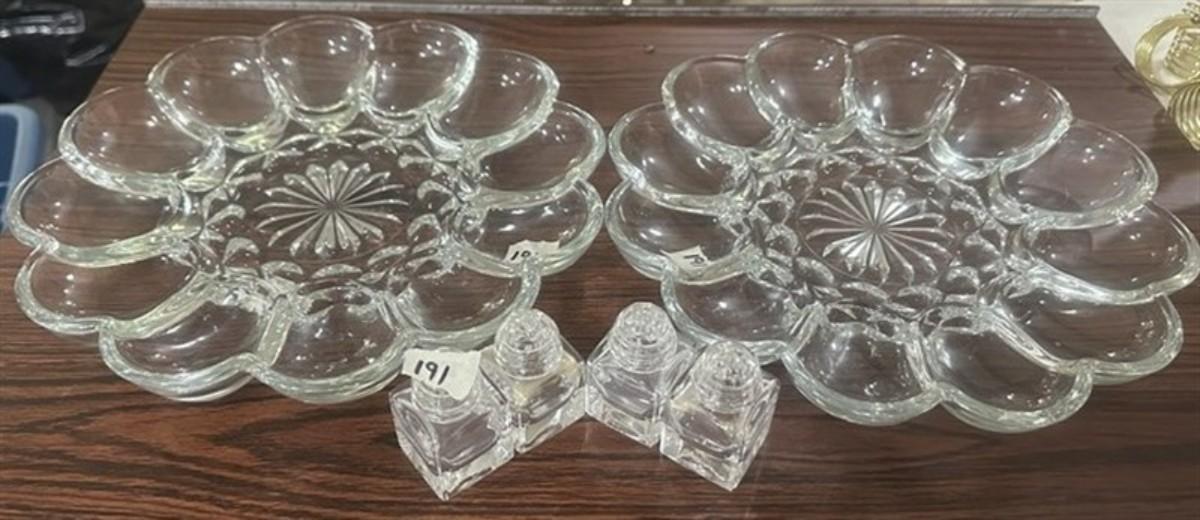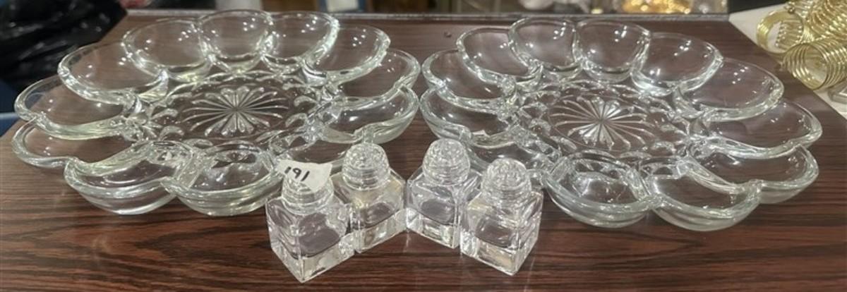 191 ~ 2 Glass Deviled Egg Plates with 4 Shakers